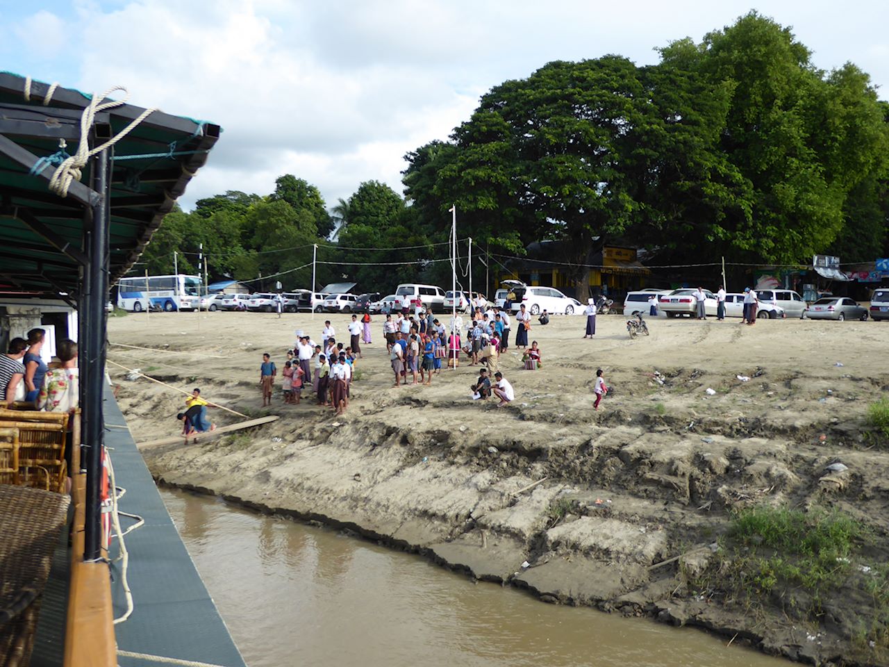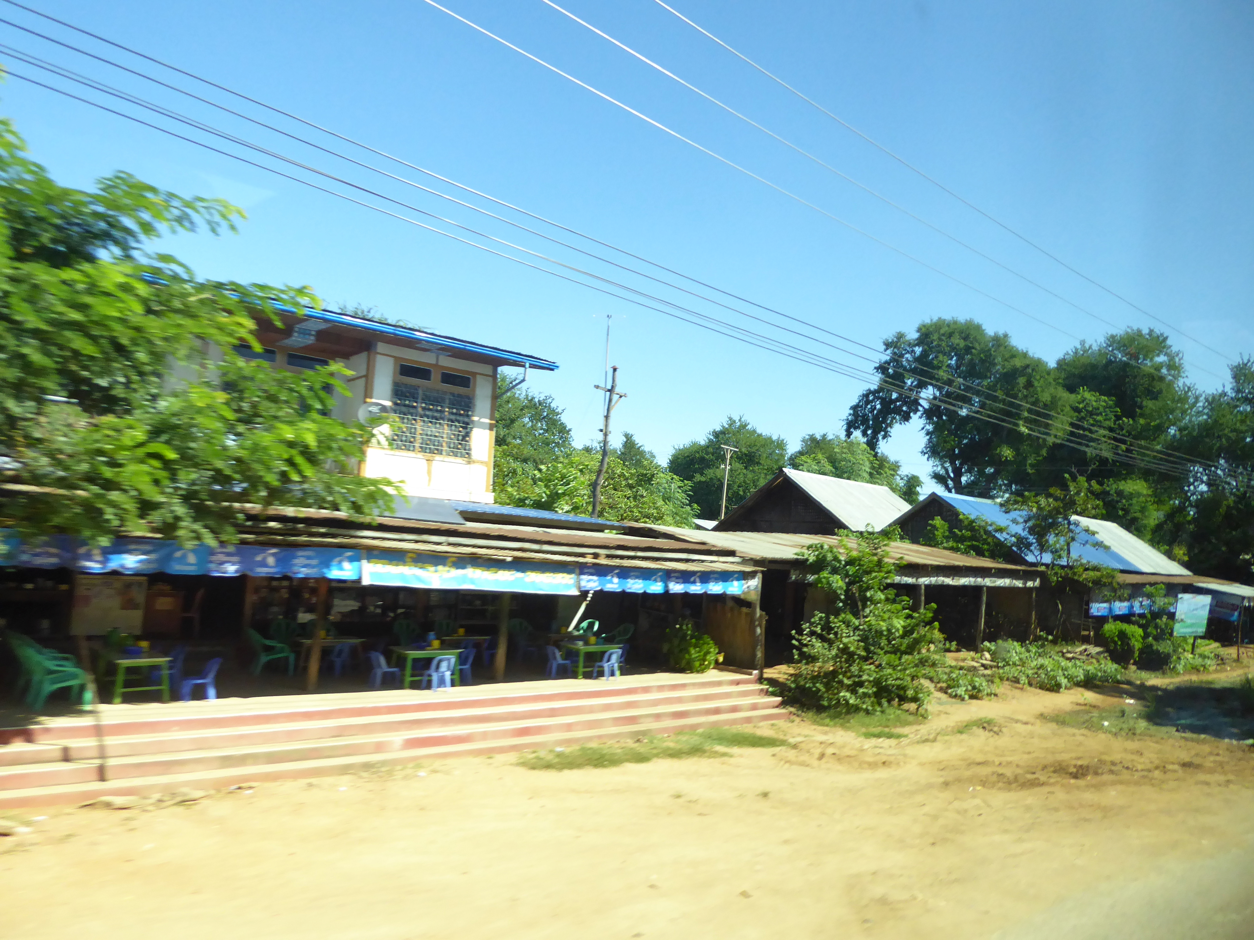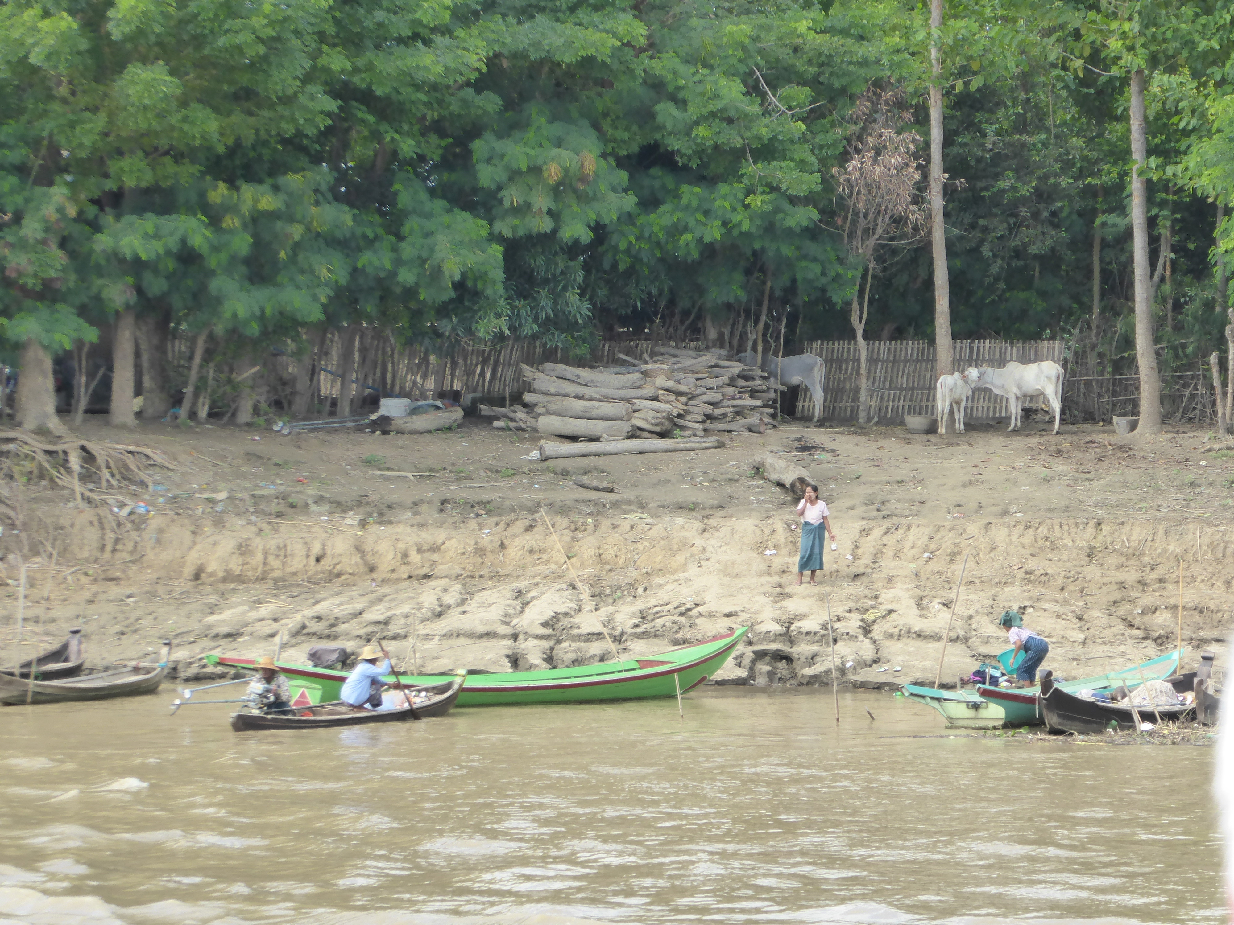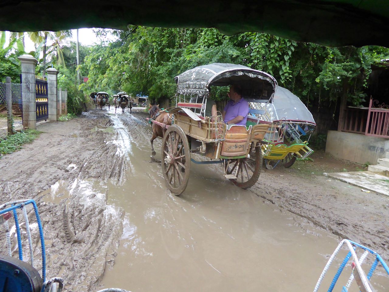 The ferry deposited us on the other side, where there were pony and traps waiting. There was very little choice but to take a pony and trap as the road was a sea of mud and slurry, plus we were collared by a girl selling trinkets who also arranged the trap for us. 15000 Kyat for the pony and trap. She followed us on her bicycle until we bought some "lucky" bells.