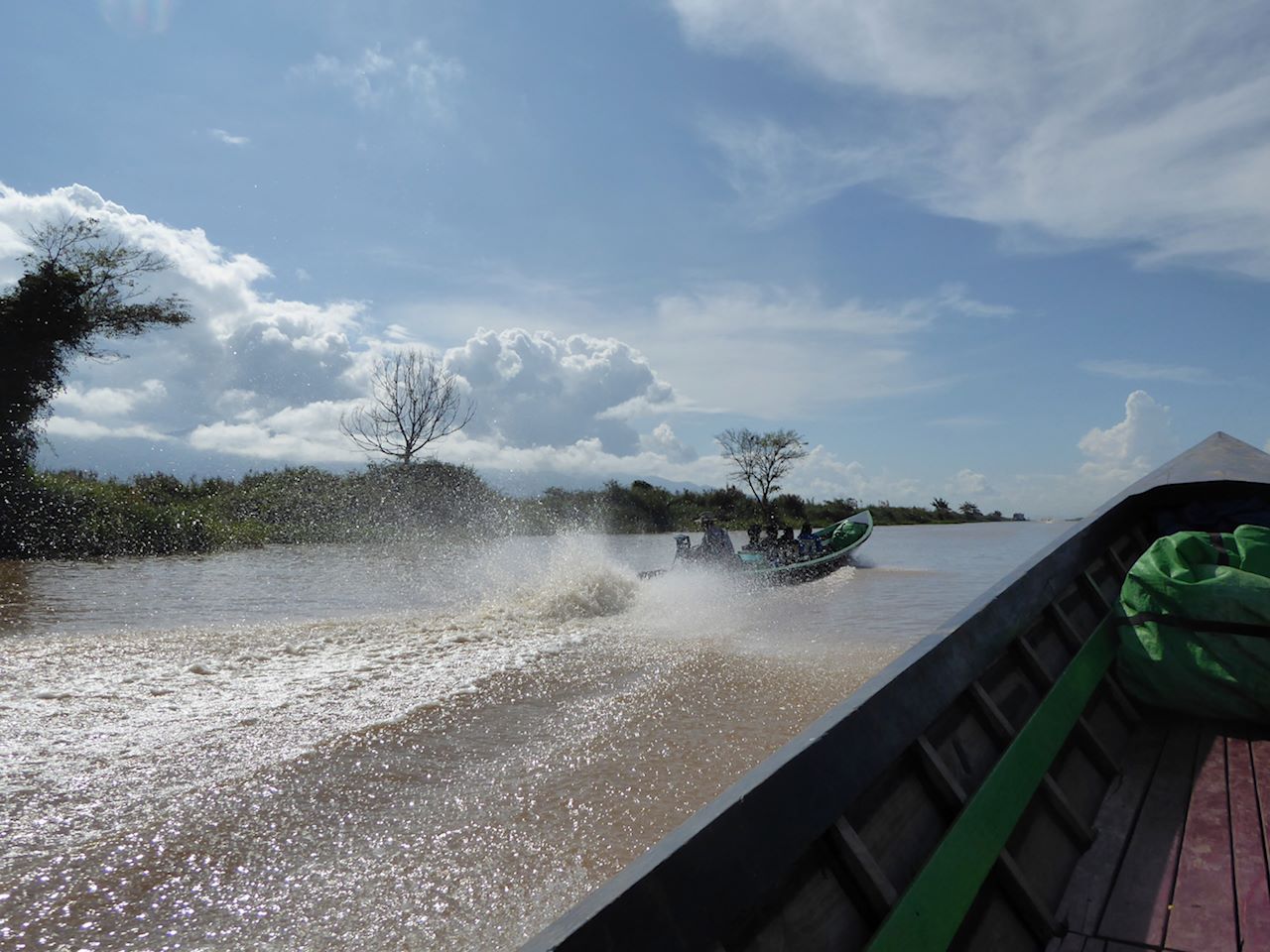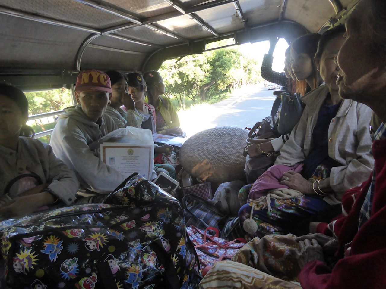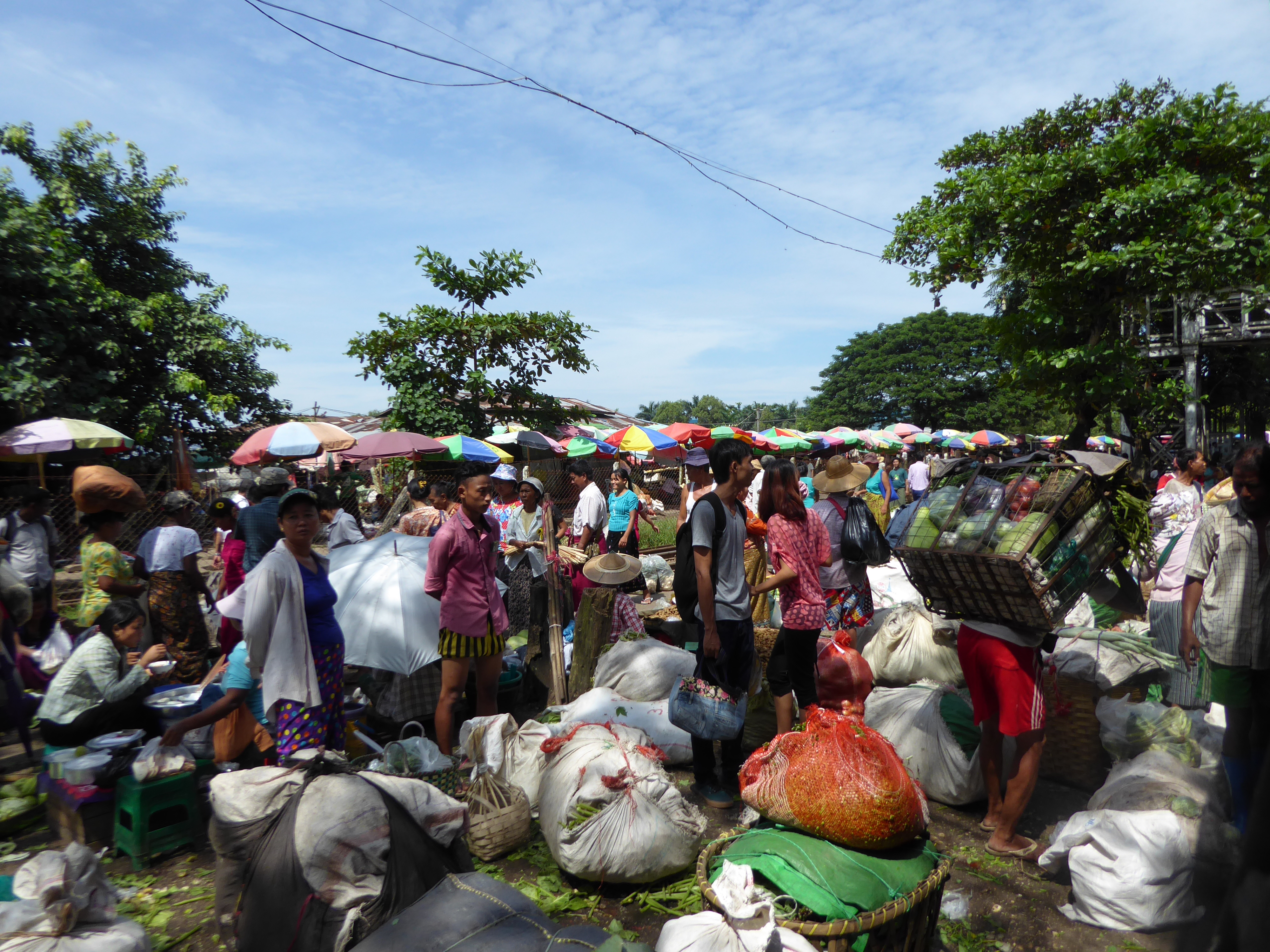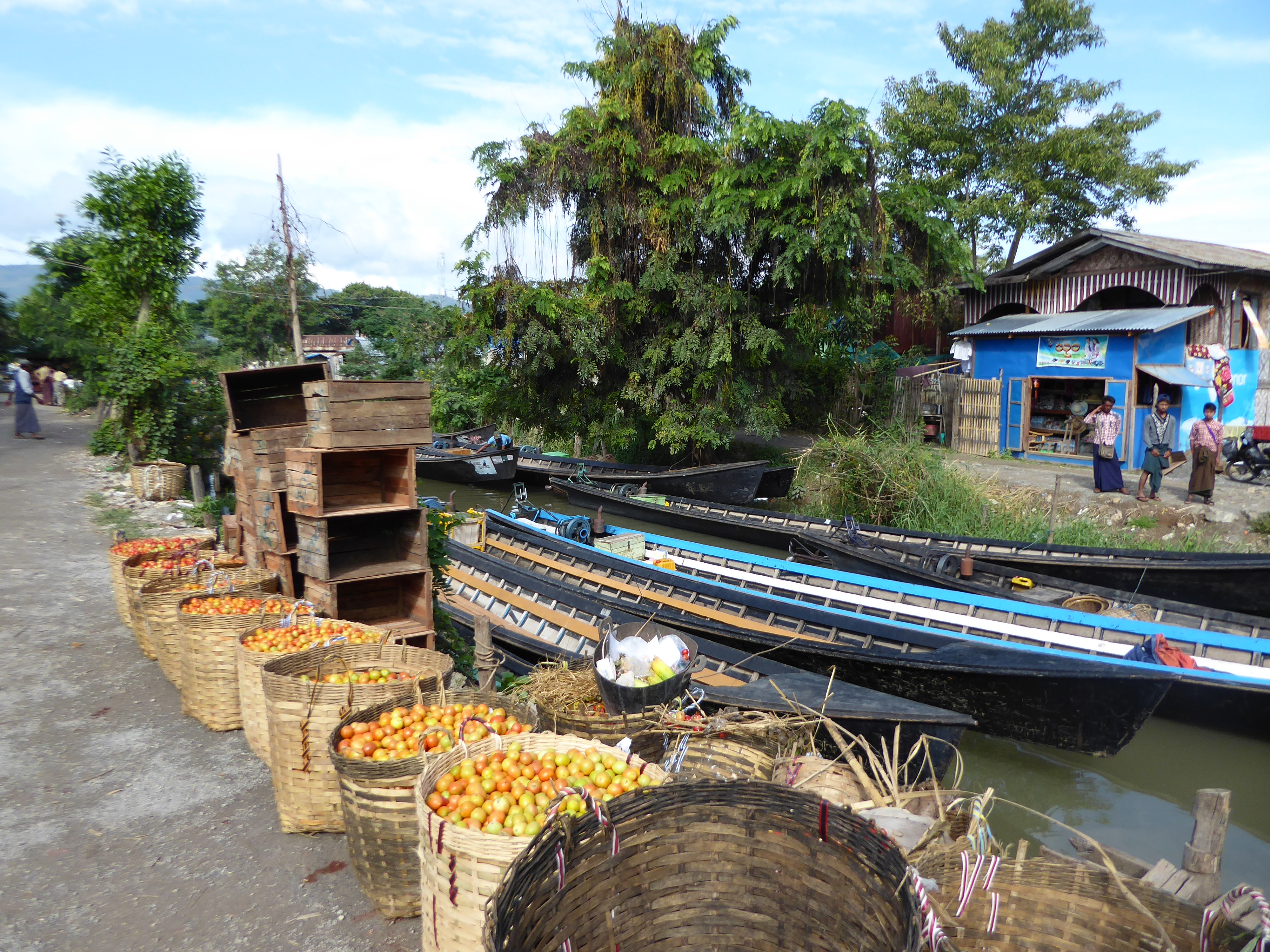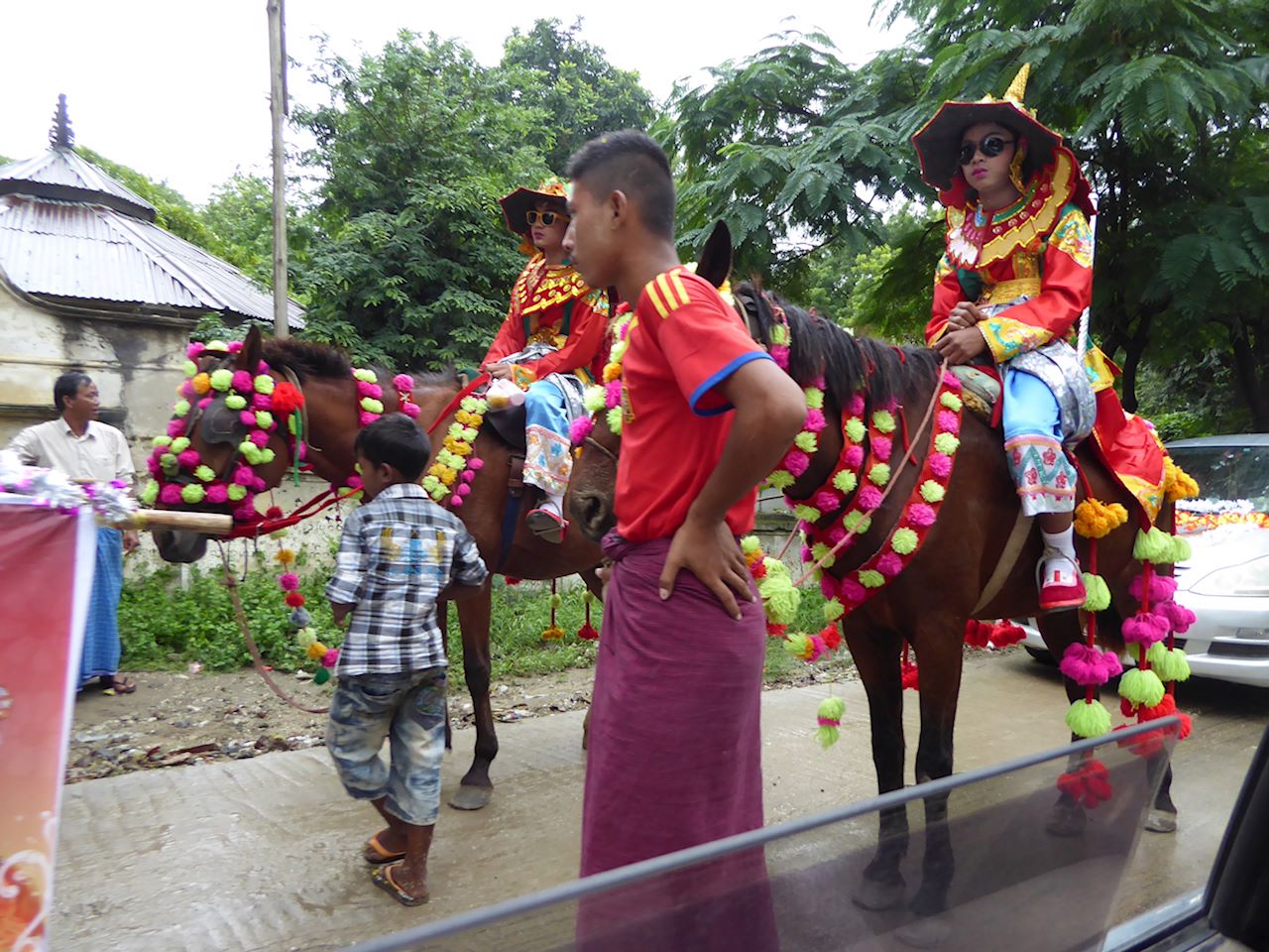 The ferry deposited us on the other side, where there were pony and traps waiting. There was very little choice but to take a pony and trap as the road was a sea of mud and slurry, plus we were collared by a girl selling trinkets who also arranged the trap for us. 15000 Kyat for the pony and trap. She followed us on her bicycle until we bought some "lucky" bells.