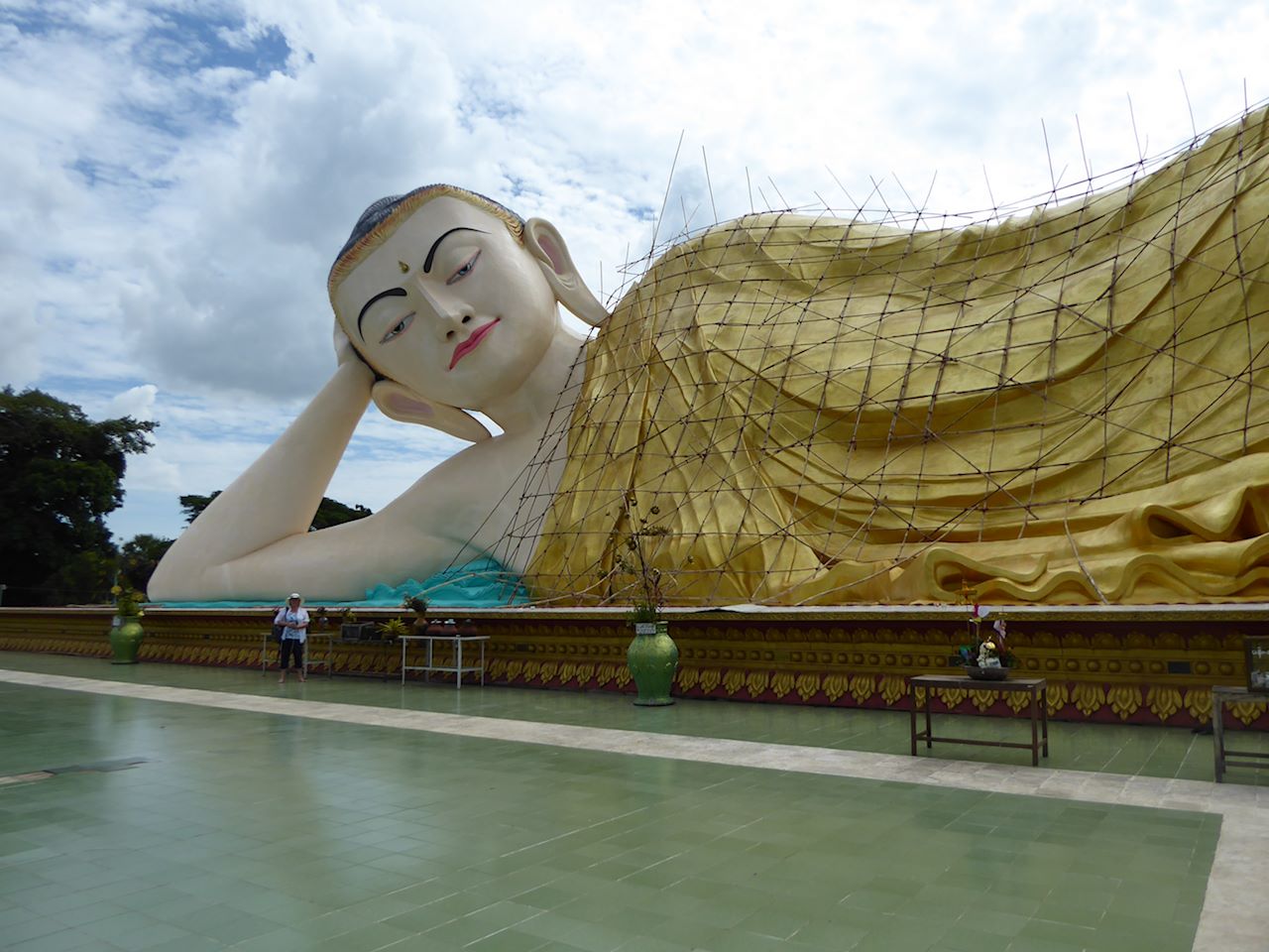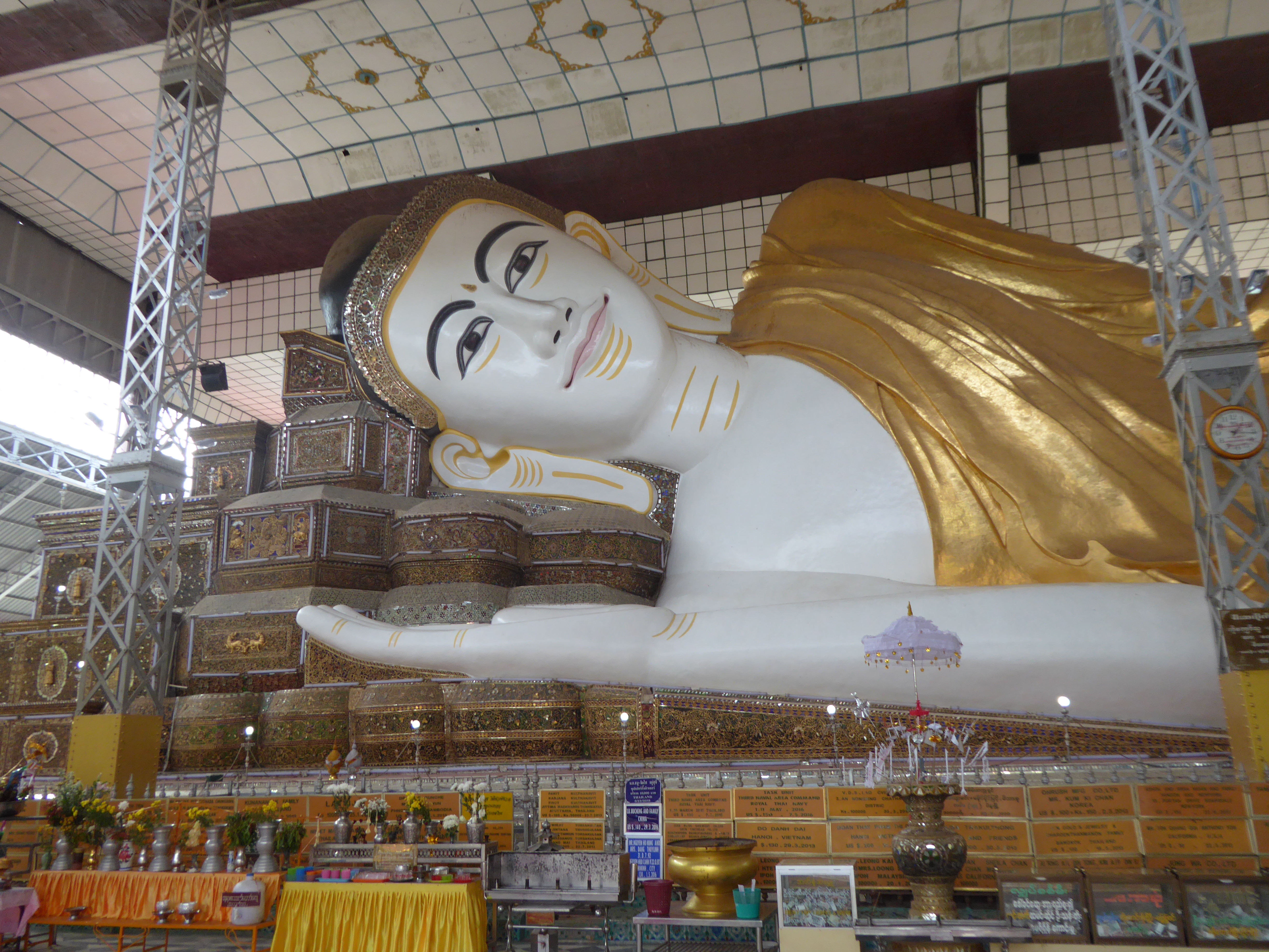 There's a small shrine with a Buddha inside, but mostly it's a spectacle to be seen from outside, with some steps going up one side, all of which has to be done barefoot. We were followed round by a local vendor, not entirely sure what she was selling, but we didn't give her anything.