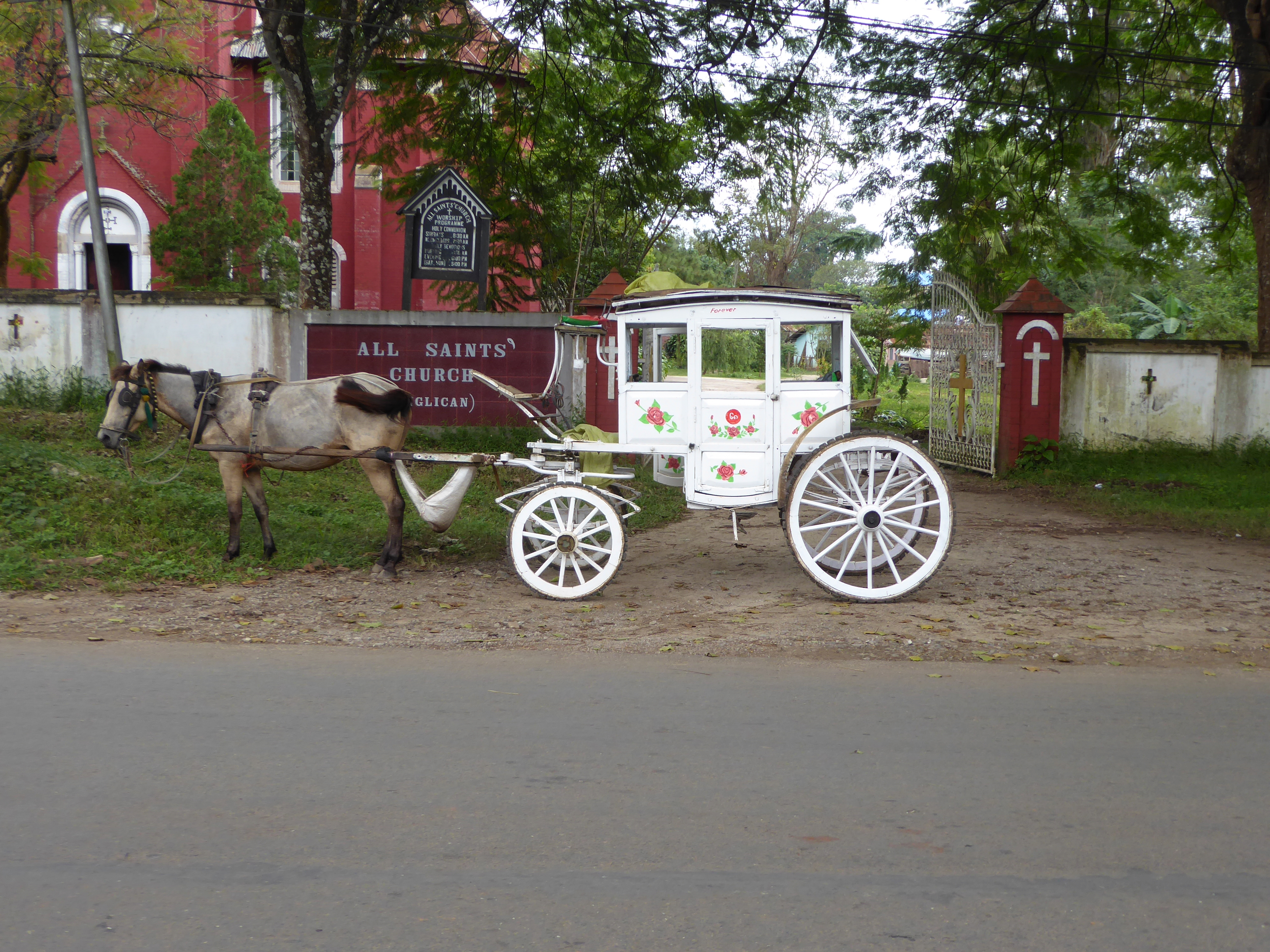 On the way to the monastery we were involved in a minor road accident, when a car tried to squeeze through a narrow bridge when we were crossing, the hub of the cart wheel caught the bumper of the car and bent it back. Everyone agreed it was the cars fault.