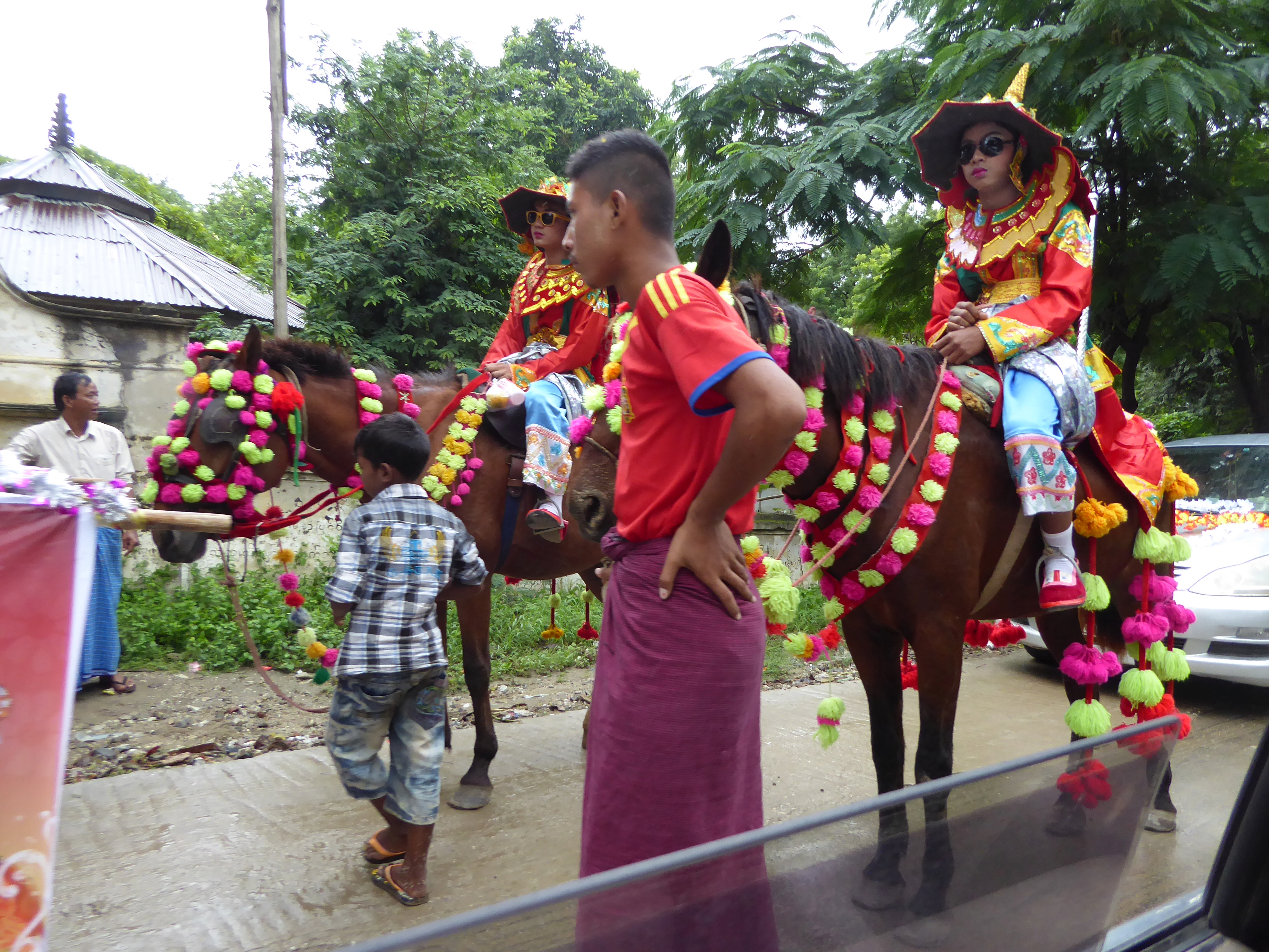 The first stop was Mingun, on the other side of the river, it took about an hour to get there, but here was a lot to see on the way. We passed a procession with oxen and horses decorated in flowers and local children dressed up, the taxi driver told us it was to do with the local monastery, but he wasn't entrirely sure.