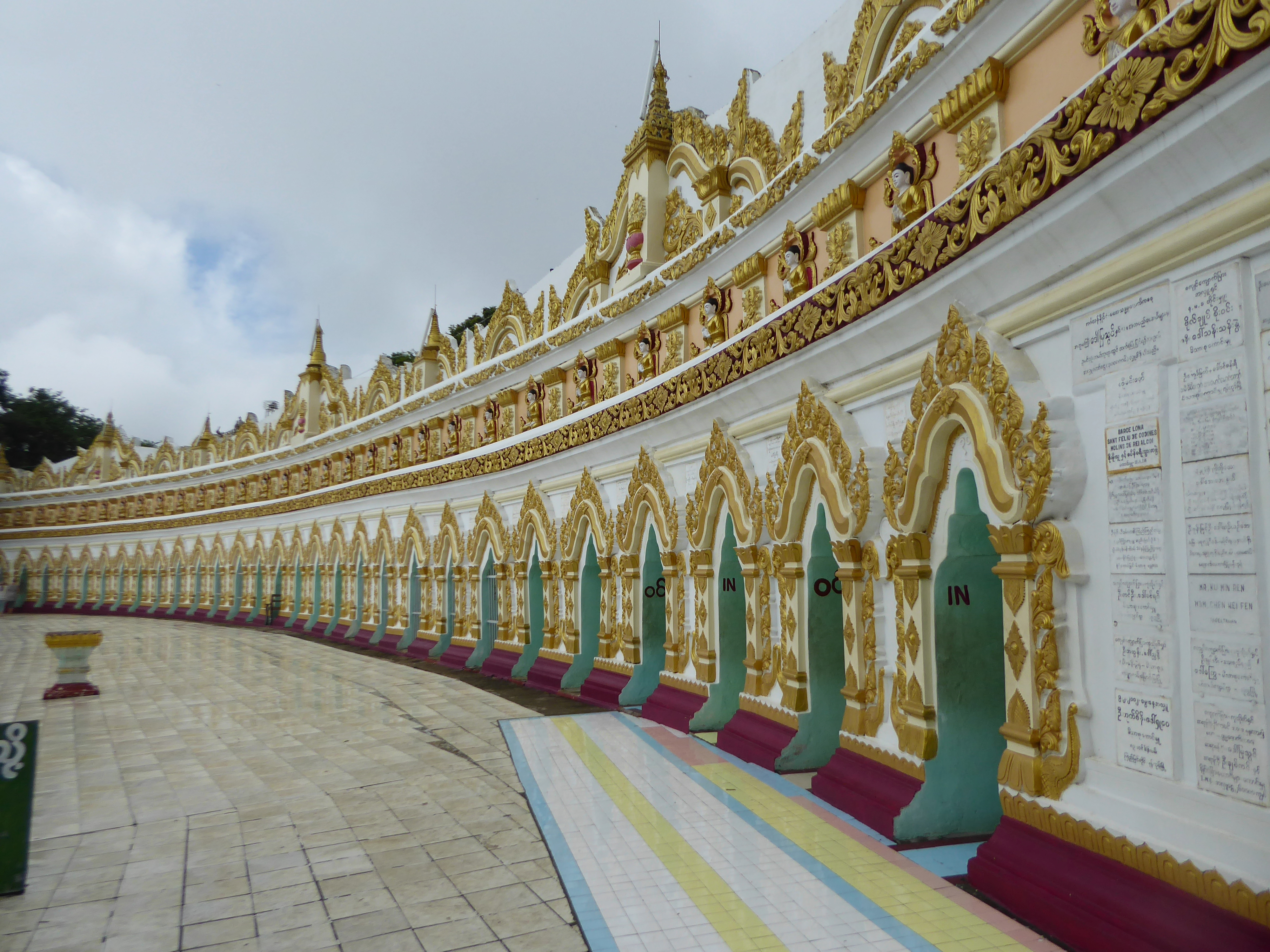 We left Mingun and headed back the way we came towards Sagaing Hill, here we visited the Oo Hmin Thone Sel Pagoda. There's a long covered walkway that leads up the hill to the pagoda itself, the walkway is lined with the usual vendors of "hand made" trinkets.
