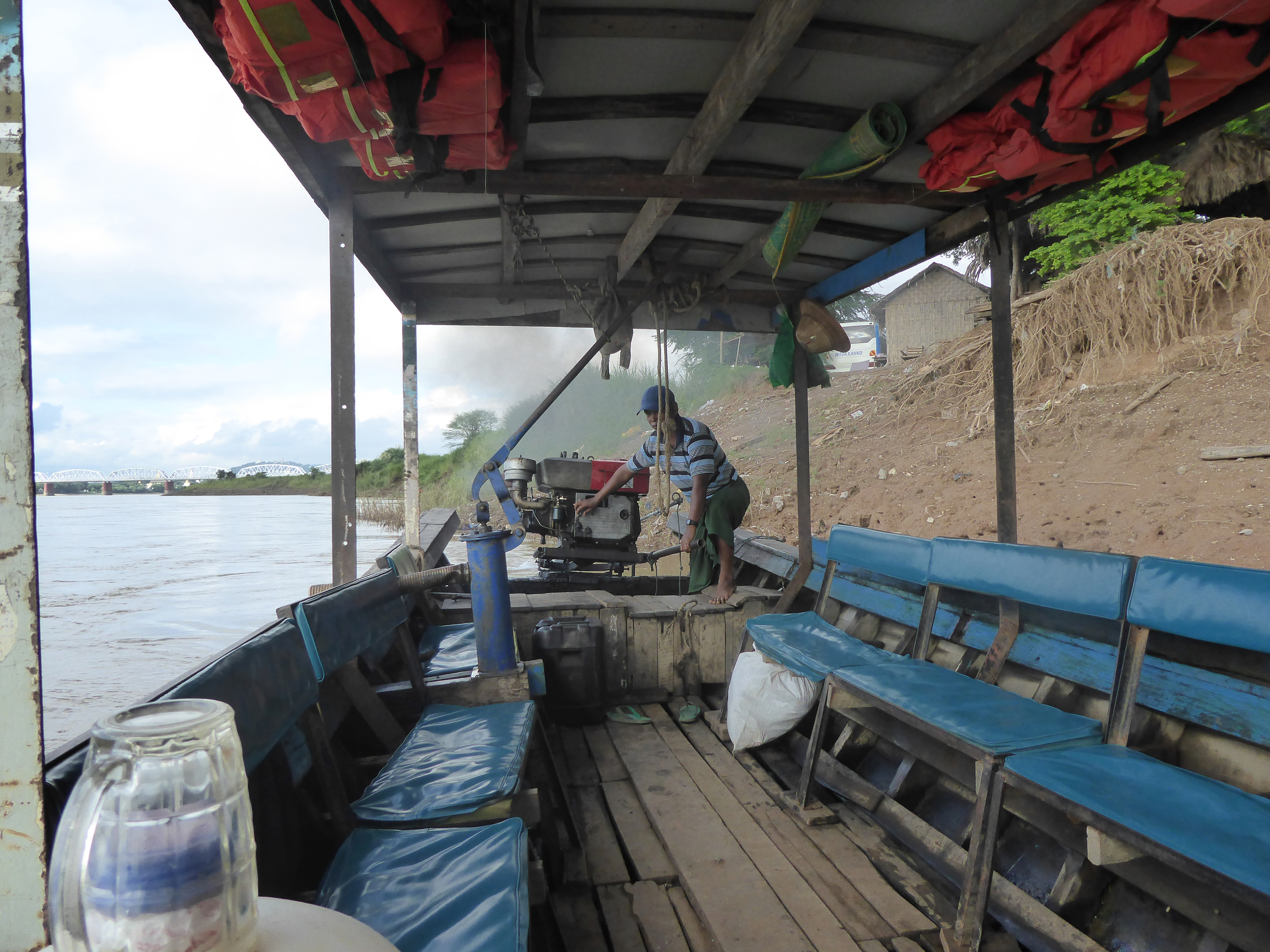 The third of the four kingdoms, is Inwa, to get there we had to cross a tributary of the Arawaddy. This is done via a small ferry, with a man constantly working the bilge pump. The taxi driver told us to be back by four thirty if we wanted to be back in time for sunset, which only gave is an hour at Inwa, our own fault because we had spent rather a long time going round each of the other places.