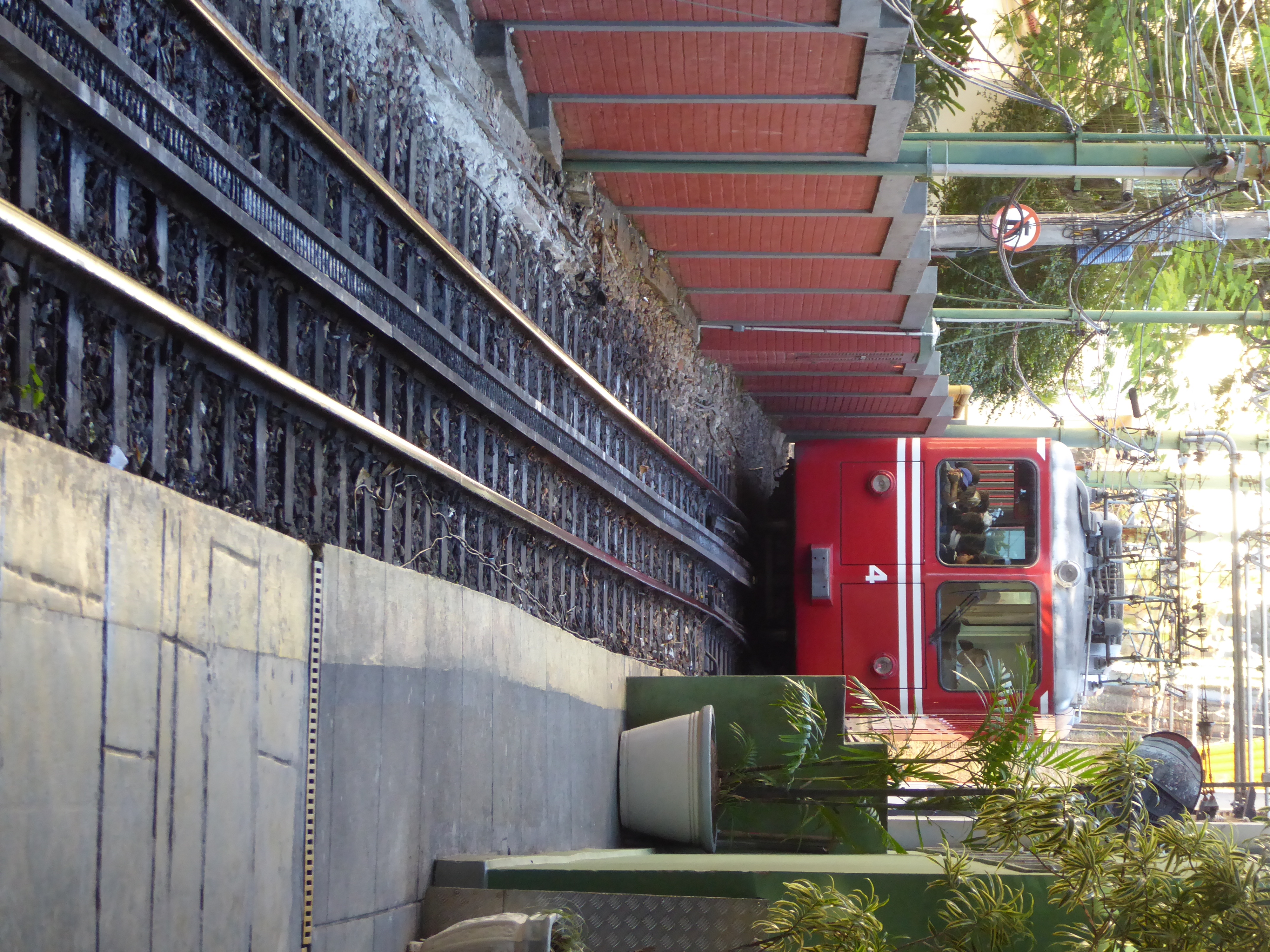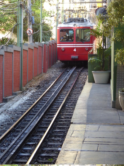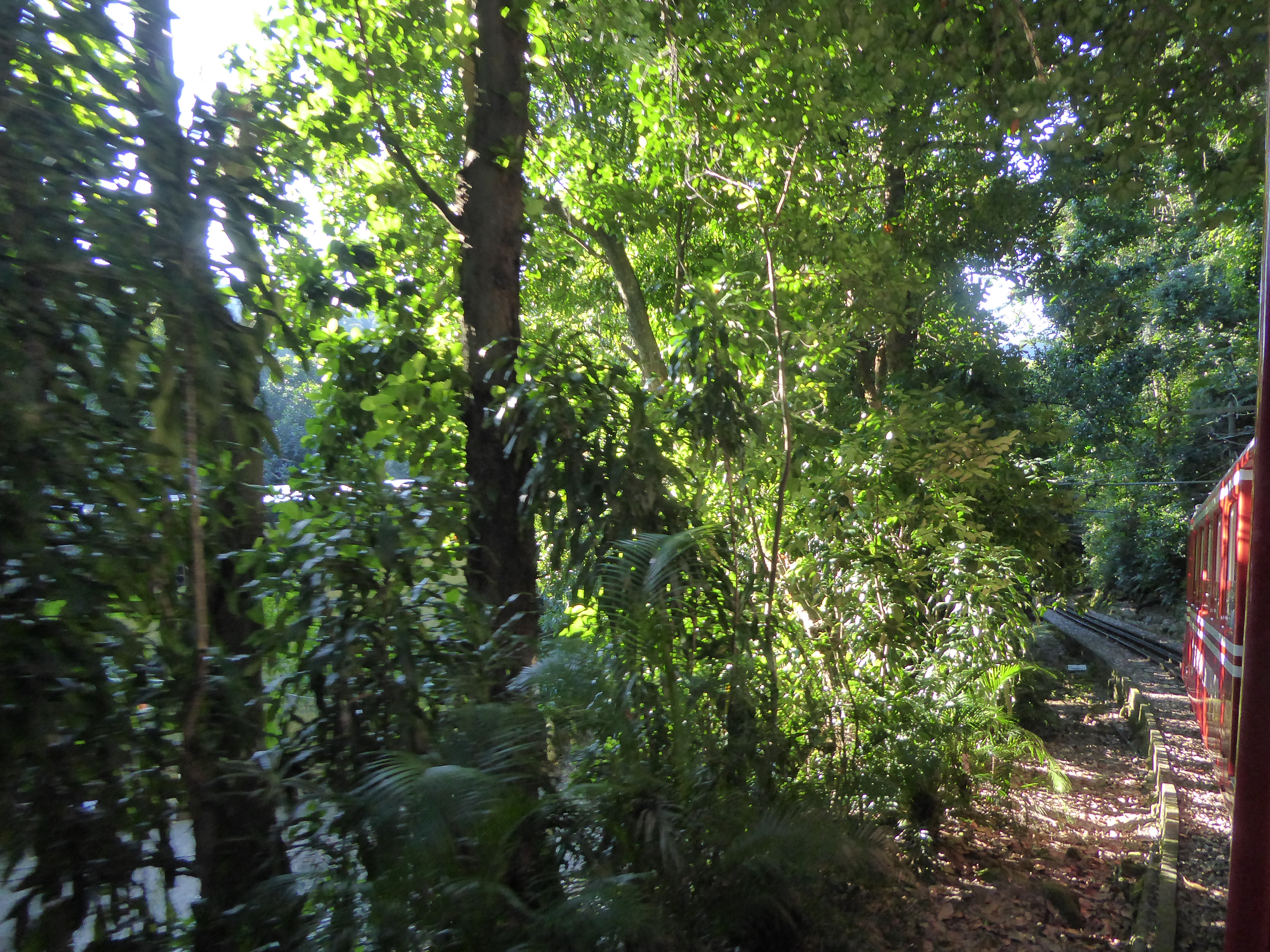 At Corcavado, we disembarked from the coach at the station. We had about 10 minutes to wait for the train, rack and pinion to get us up the hillside.