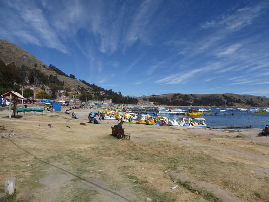 As the tour pickup wasn't until 14:00 we thought that we would try a bit more Copacabana, but the beach side of the road was far too hot, and the shady side was a little dull.