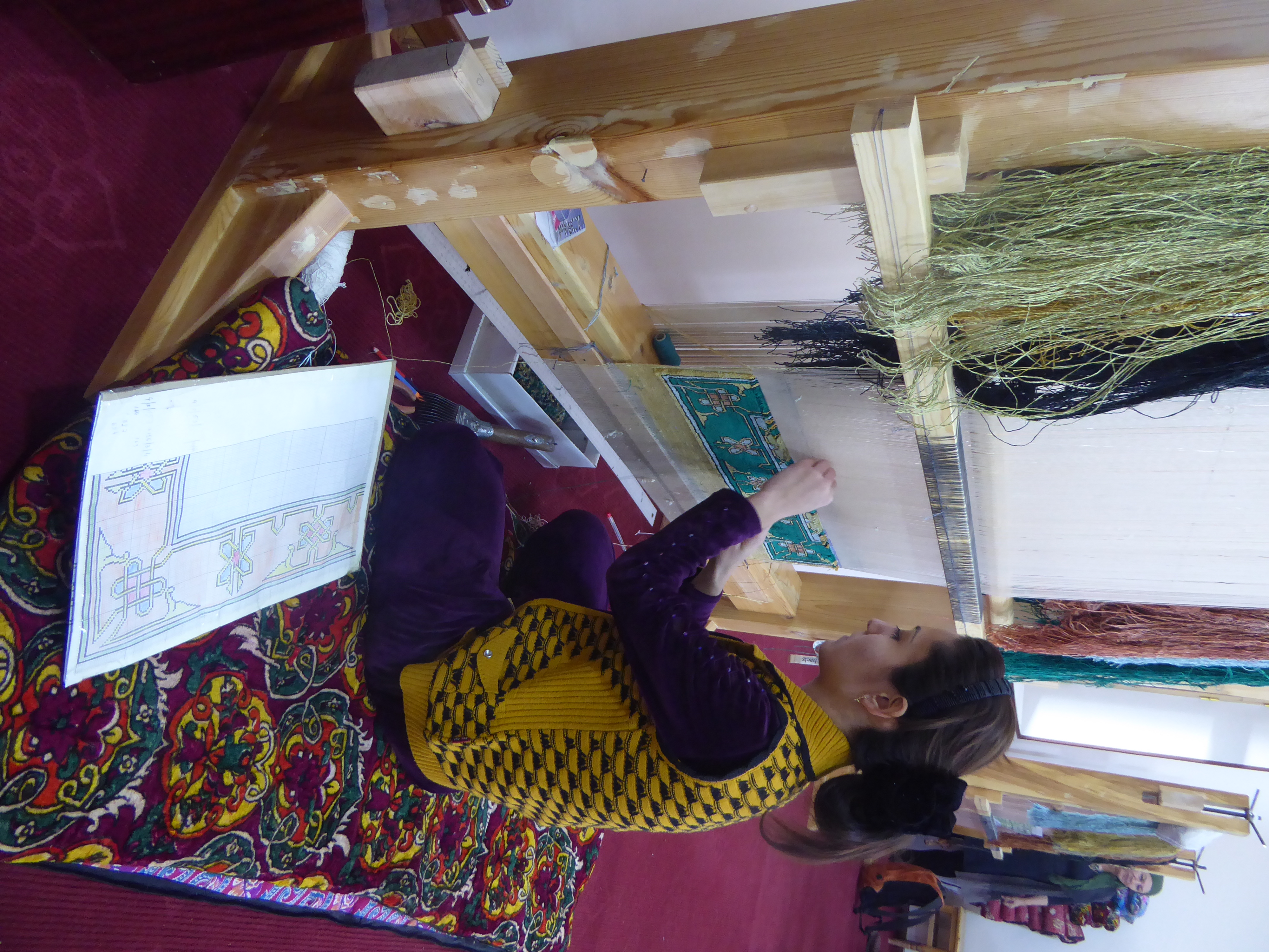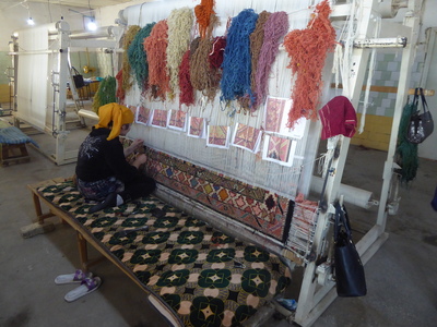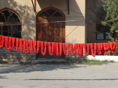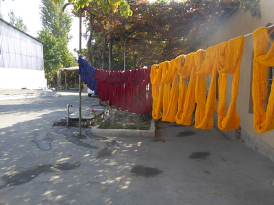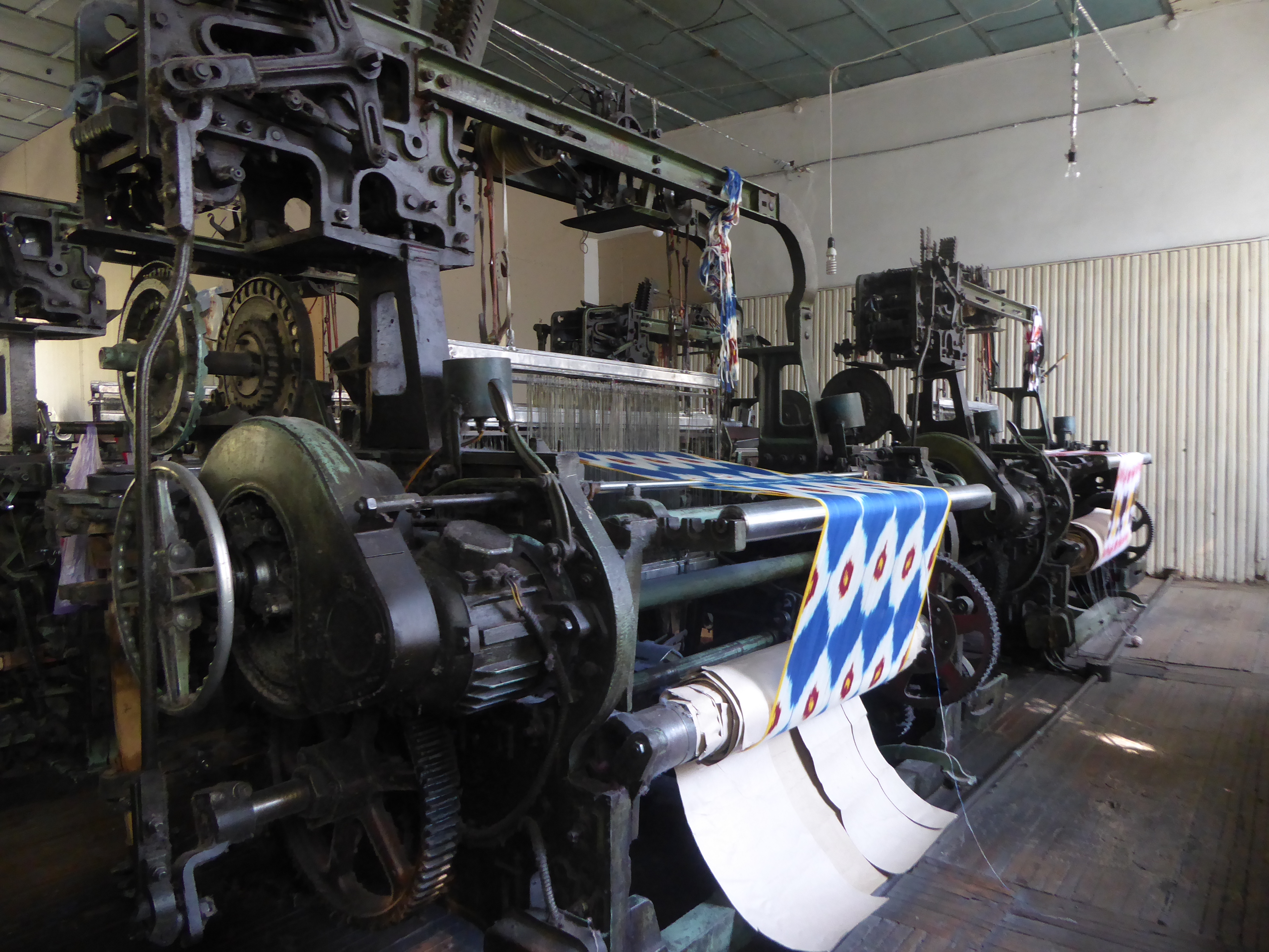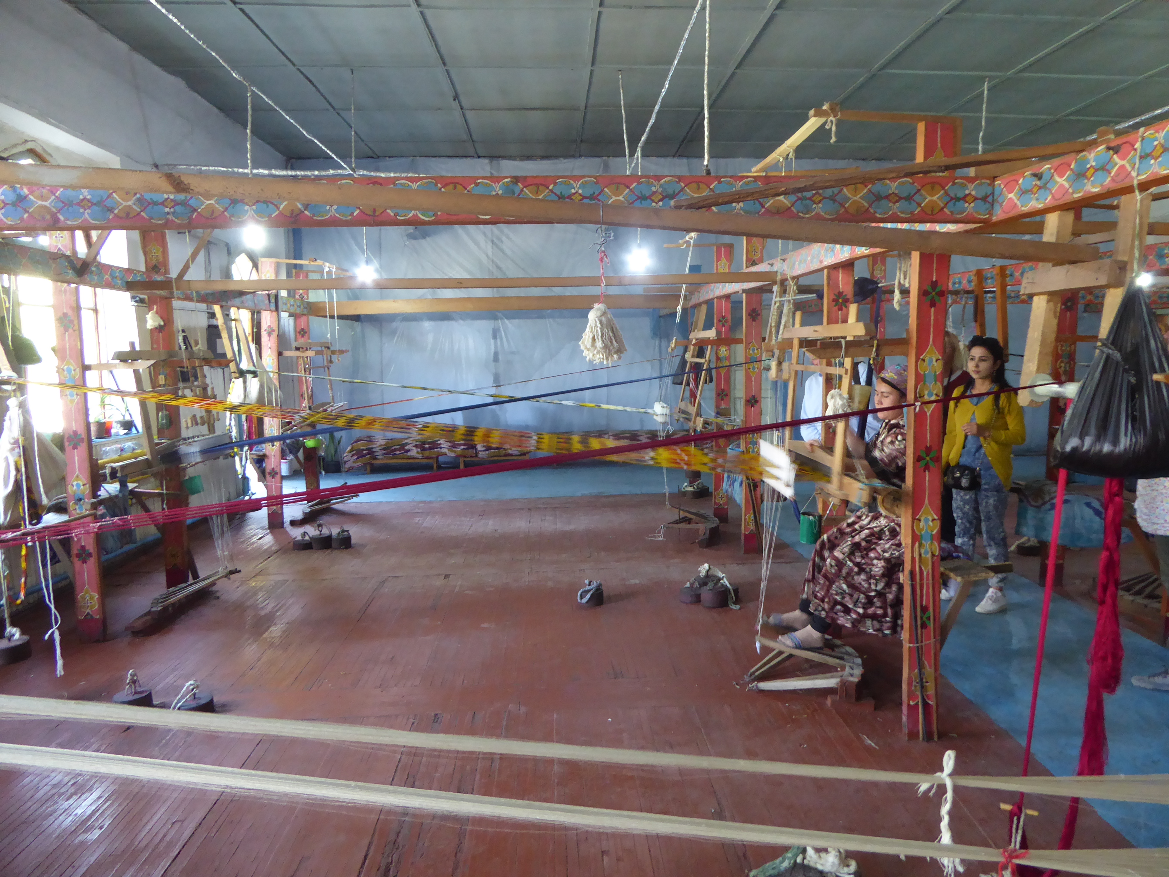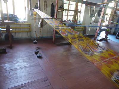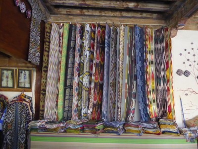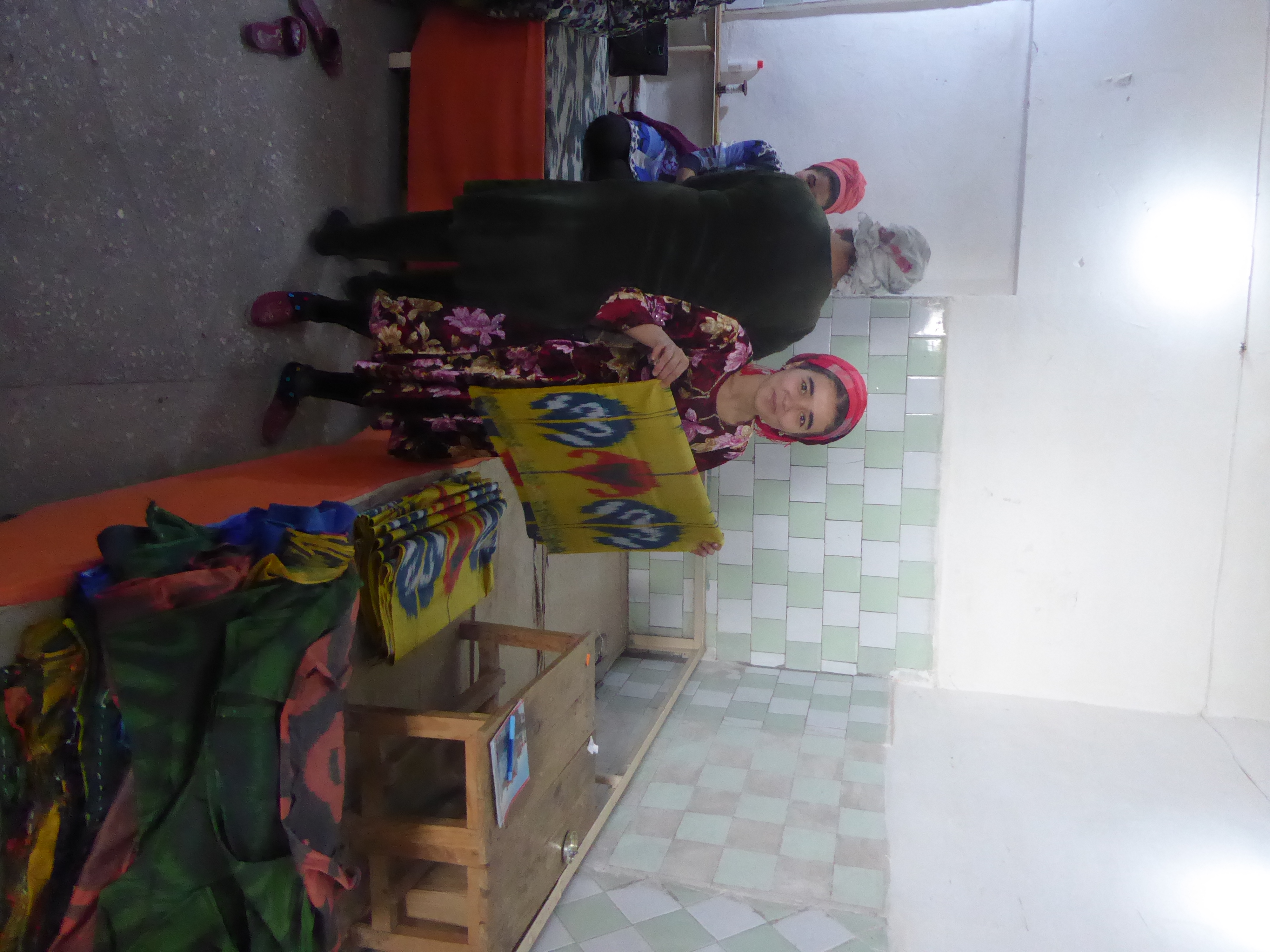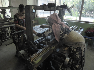 We then drove back to Margilan, to visit the silk weaving workshops, the Yodgorlik Silk Factory