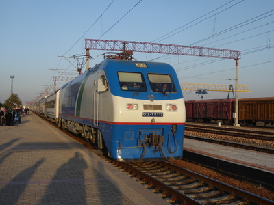 Train from Tashkent station. The rail track goes through the Kamchiq Tunnel (11.9 miles long).