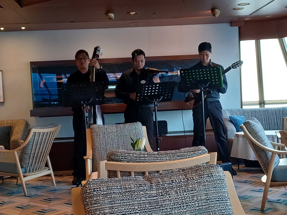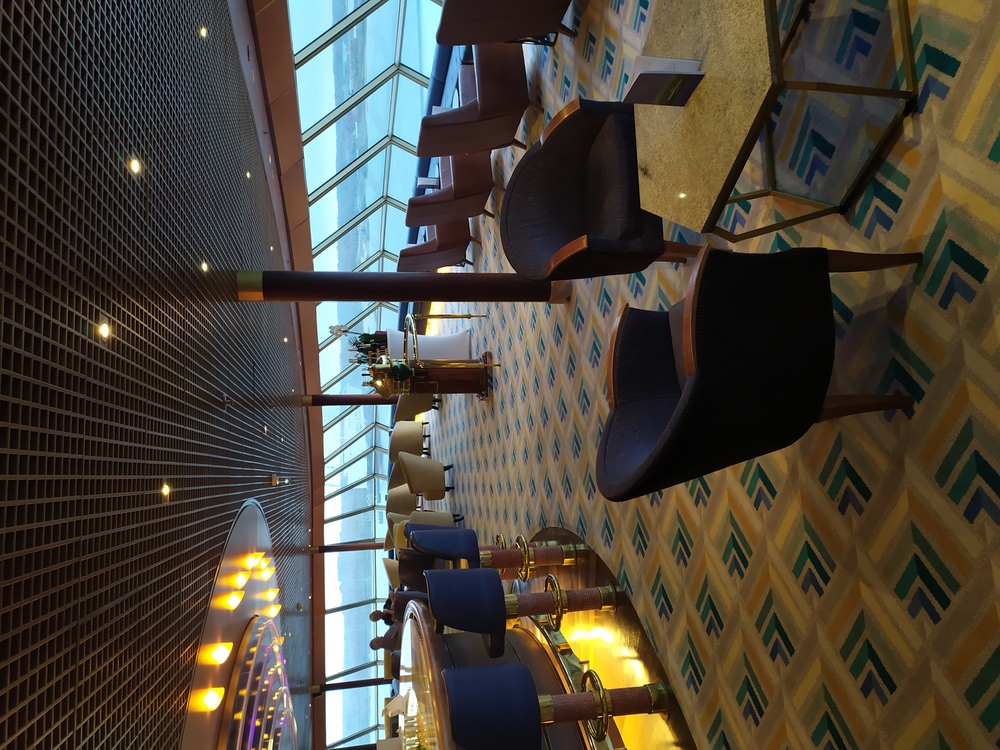 Went to have a look around the ship. First impressions were very favourable, lots of different rooms for sitting, all airy and with different themes.