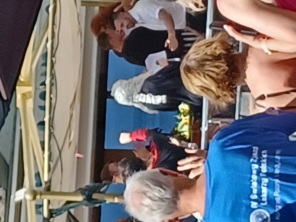 Met Craig and Colette on the ferry. It turns out that their ferry driver was Rose. Rose is the lady from Maisie,s charity shop, so knew Jo.