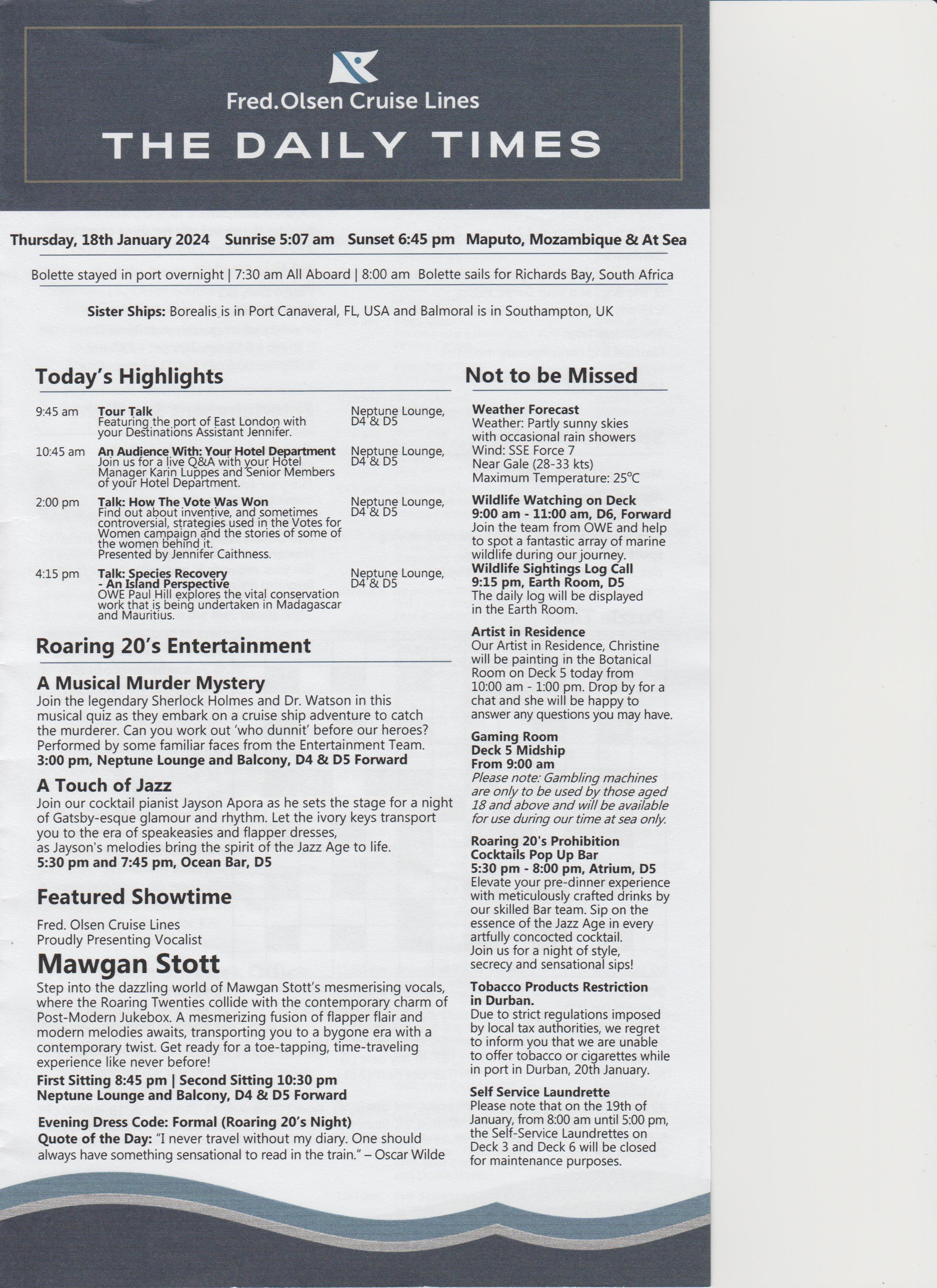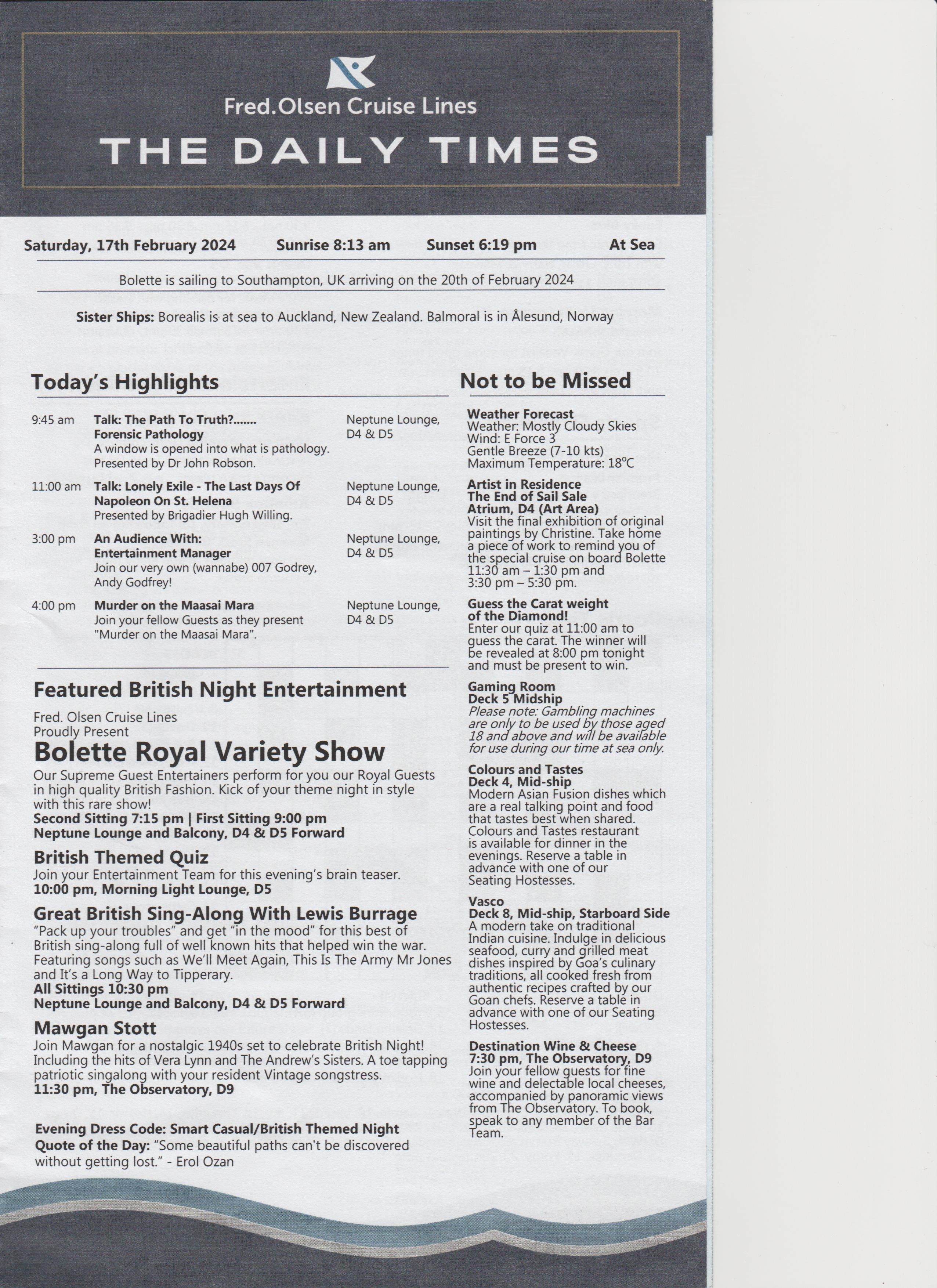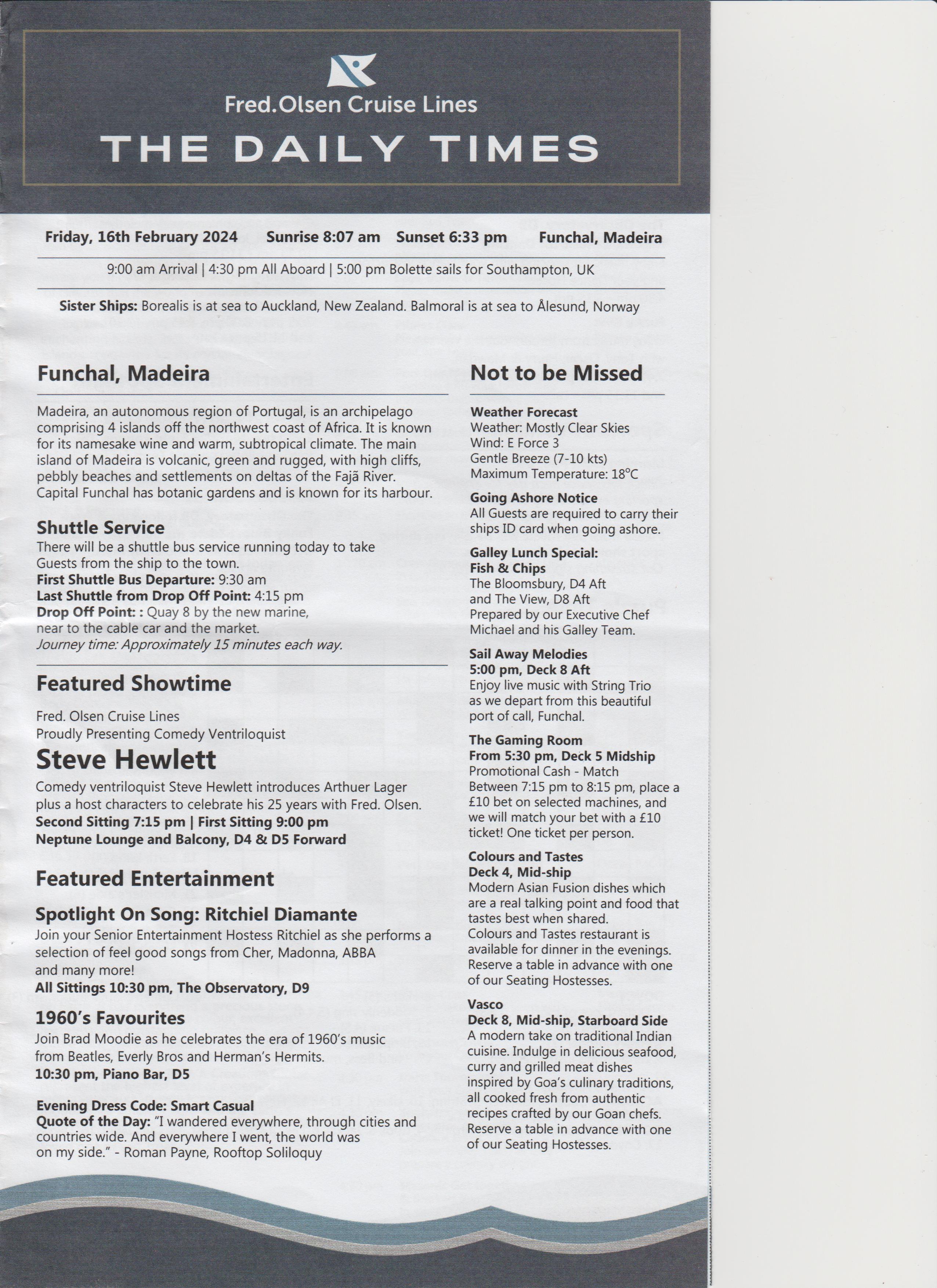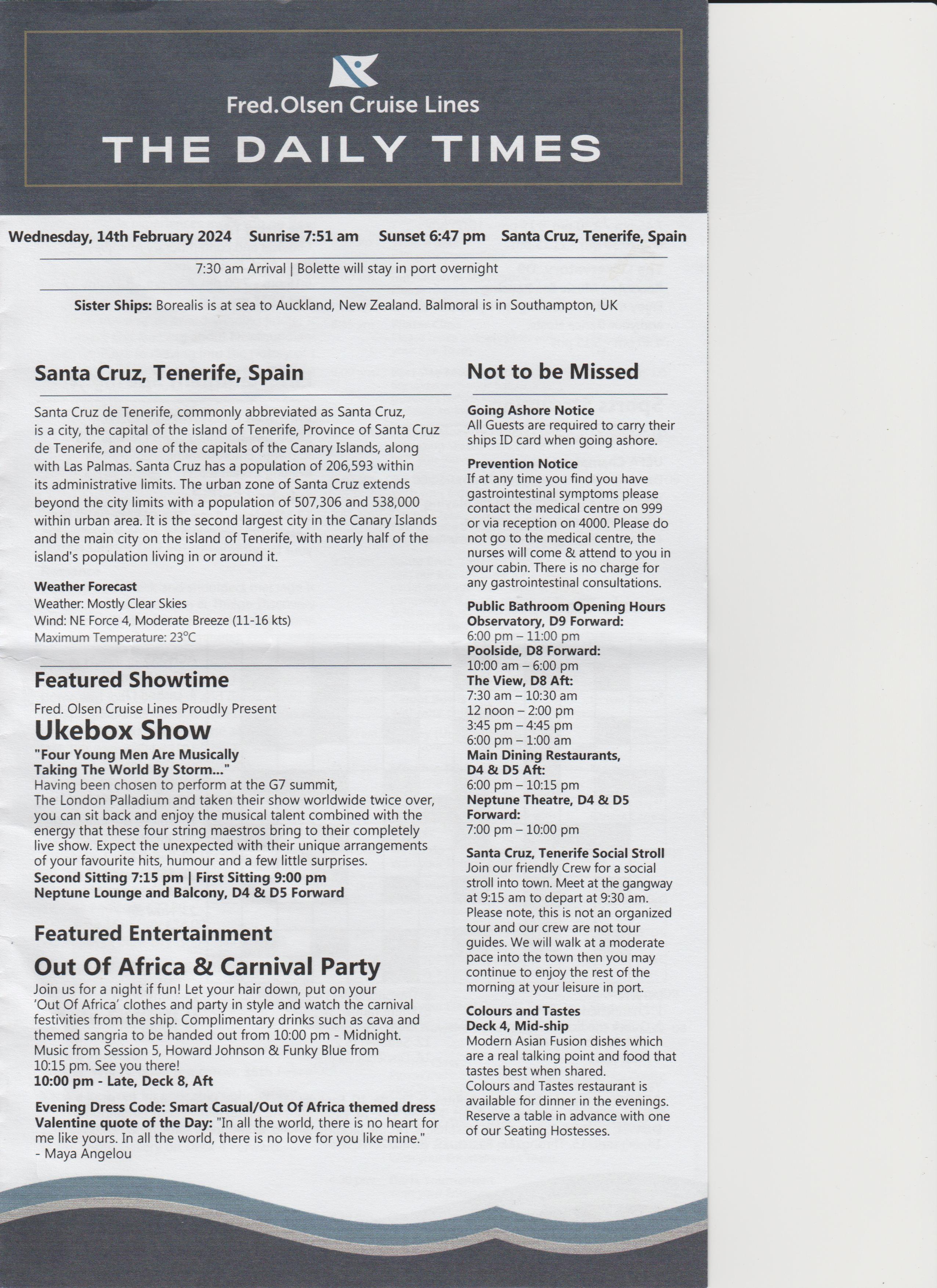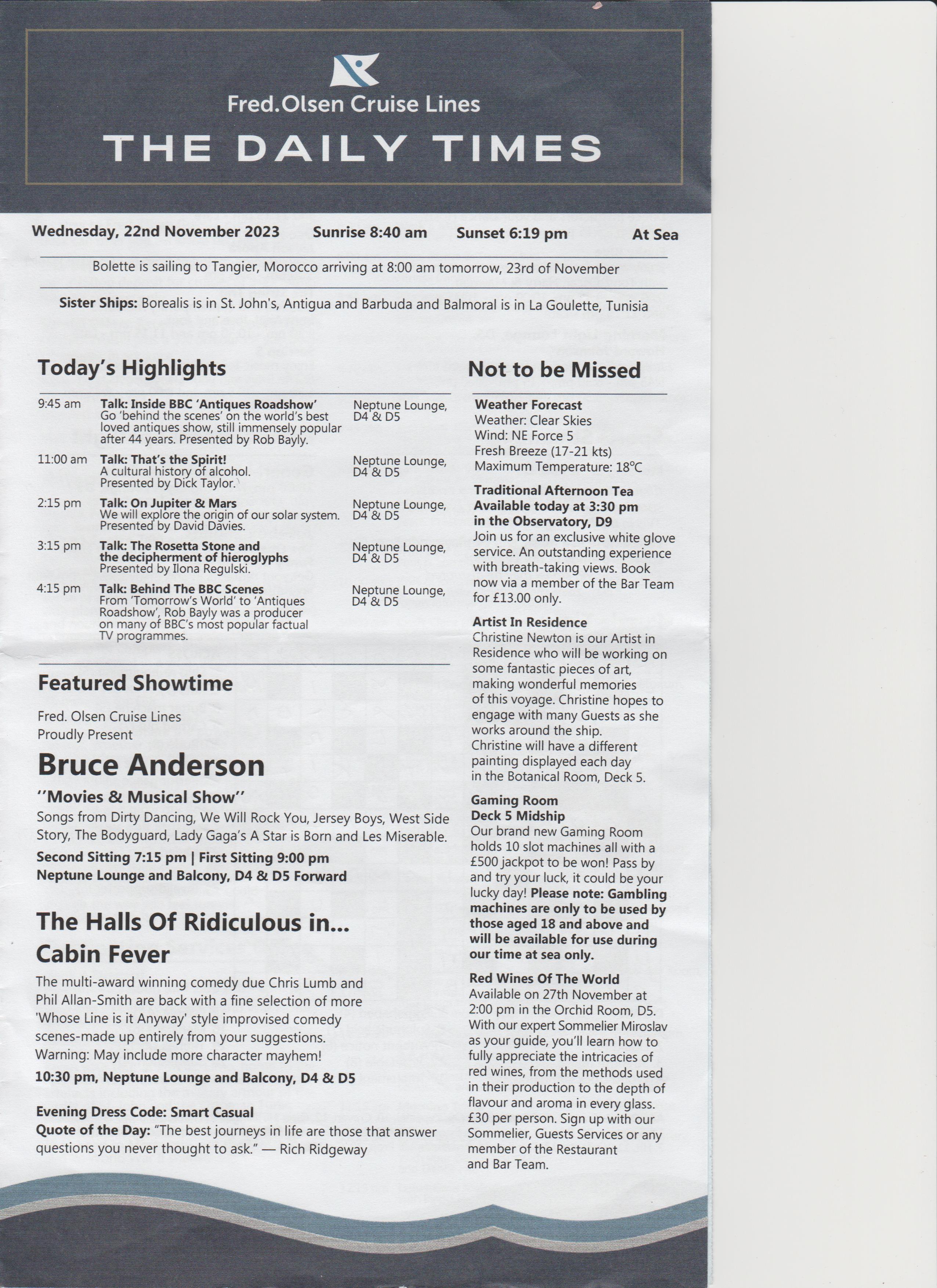 Went to the after dinner show, an introduction, a bit of everything, went back to room.