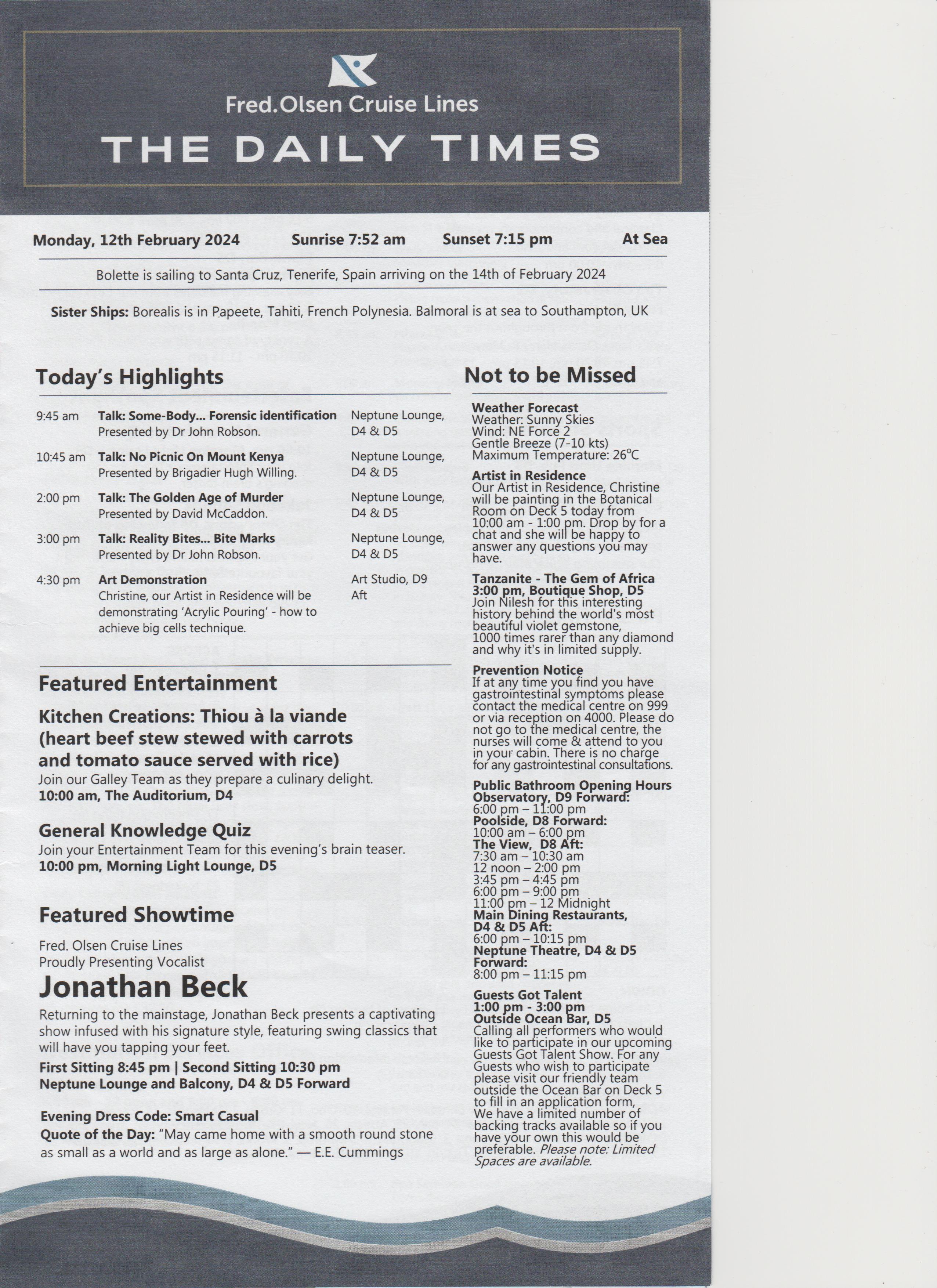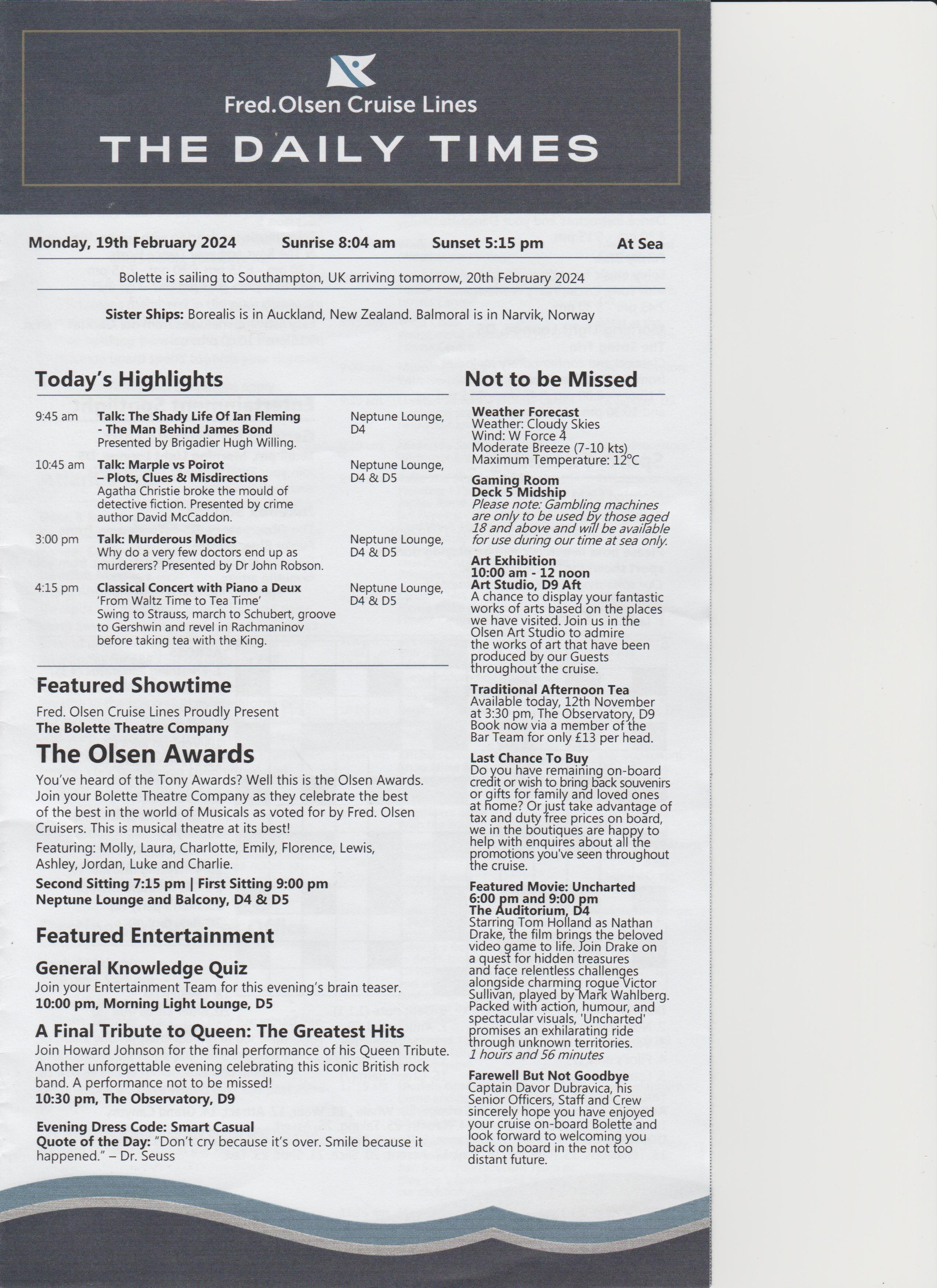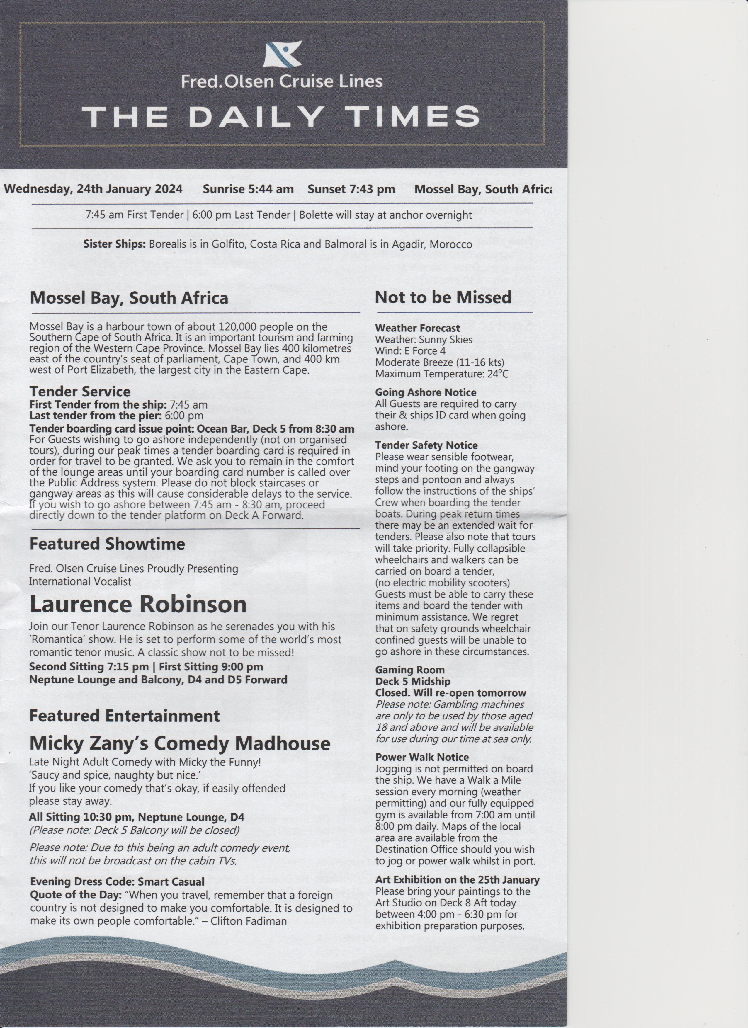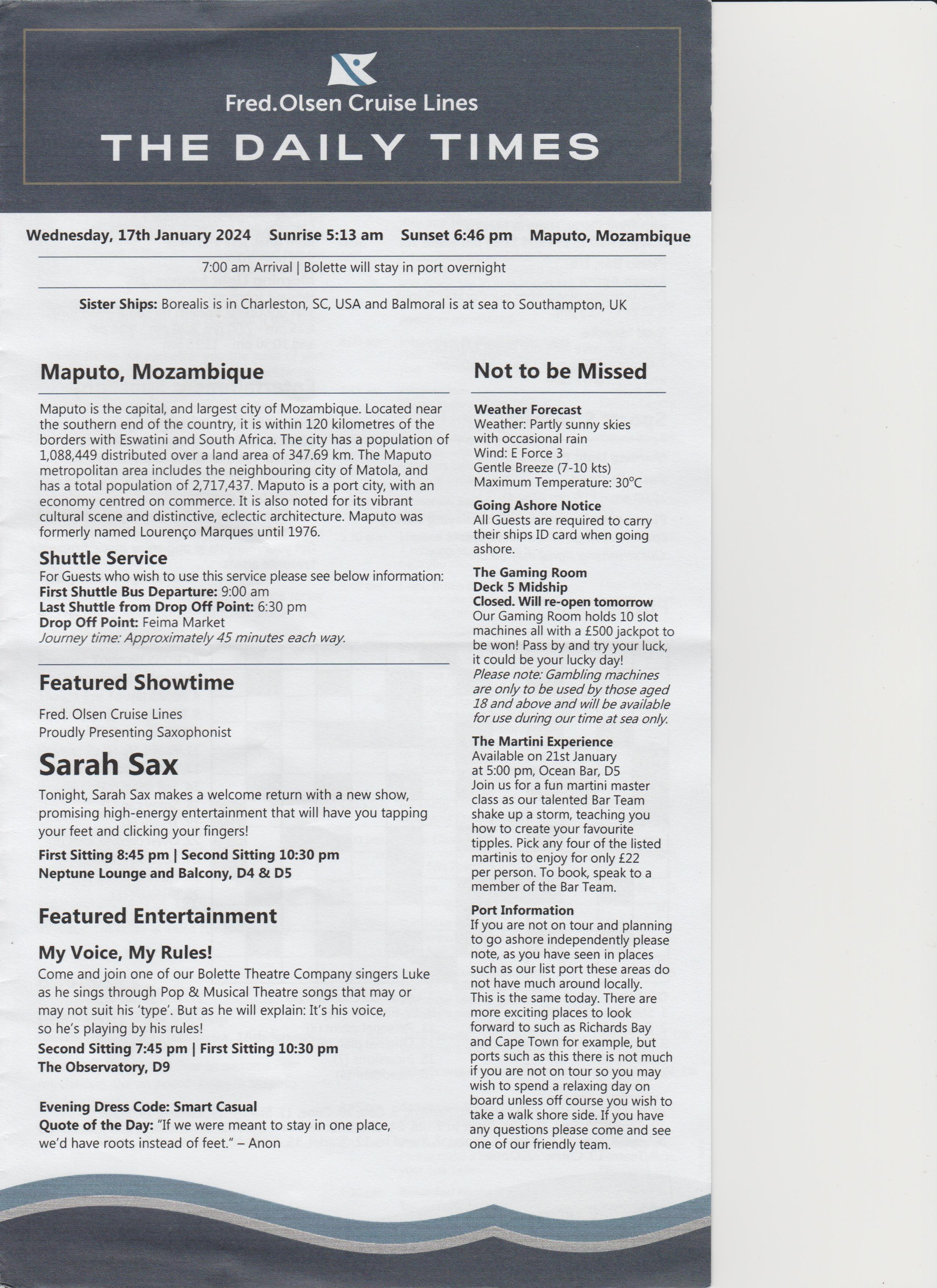 Went to the after dinner show, an introduction, a bit of everything, went back to room.