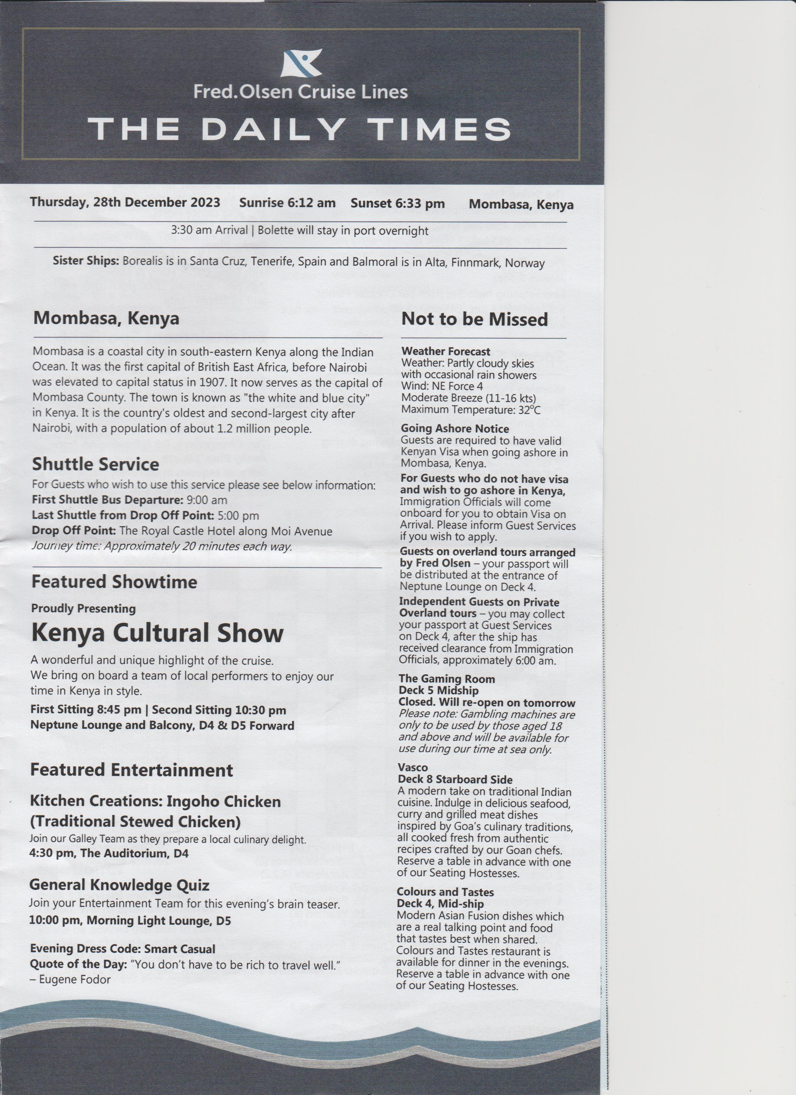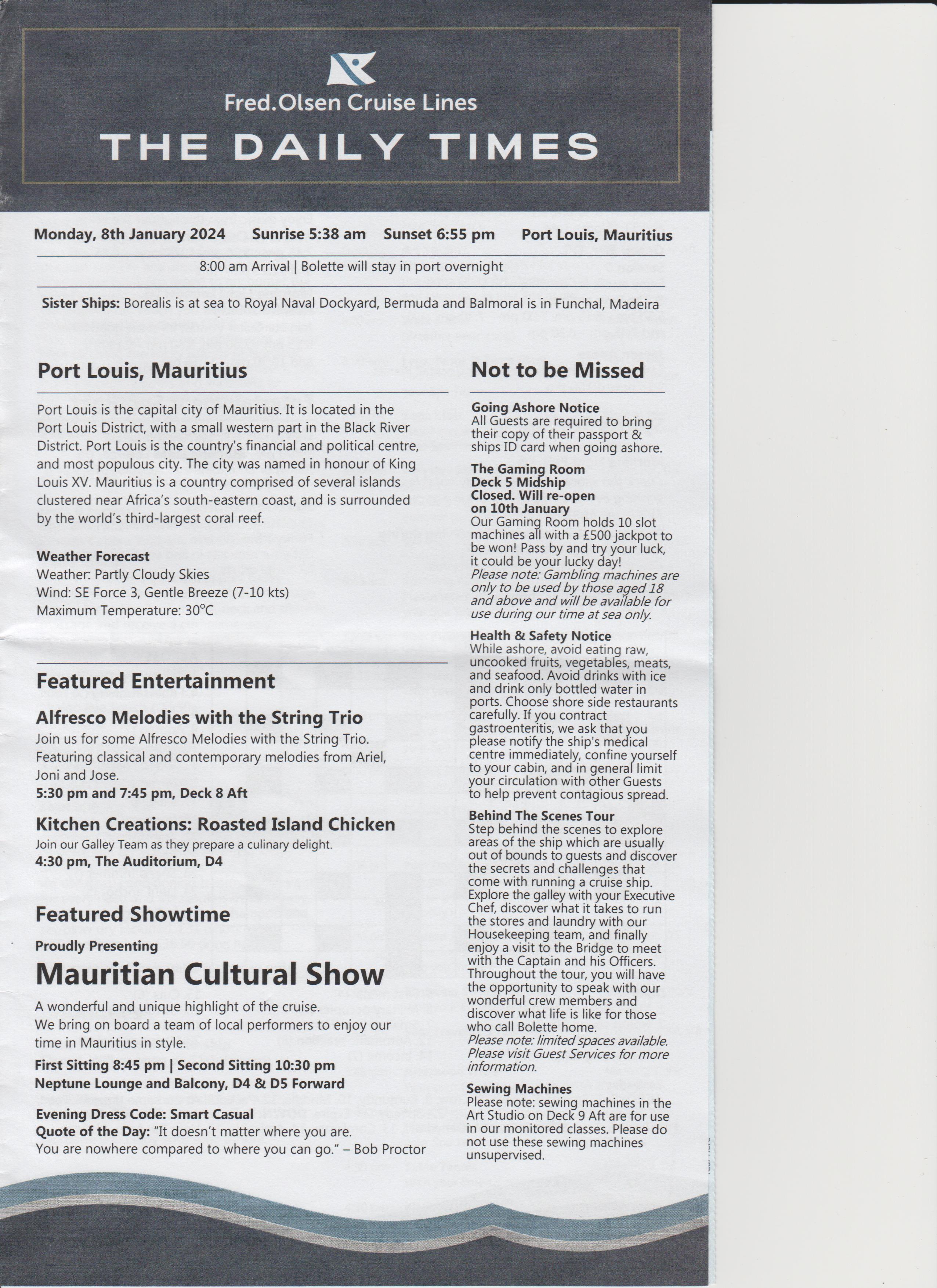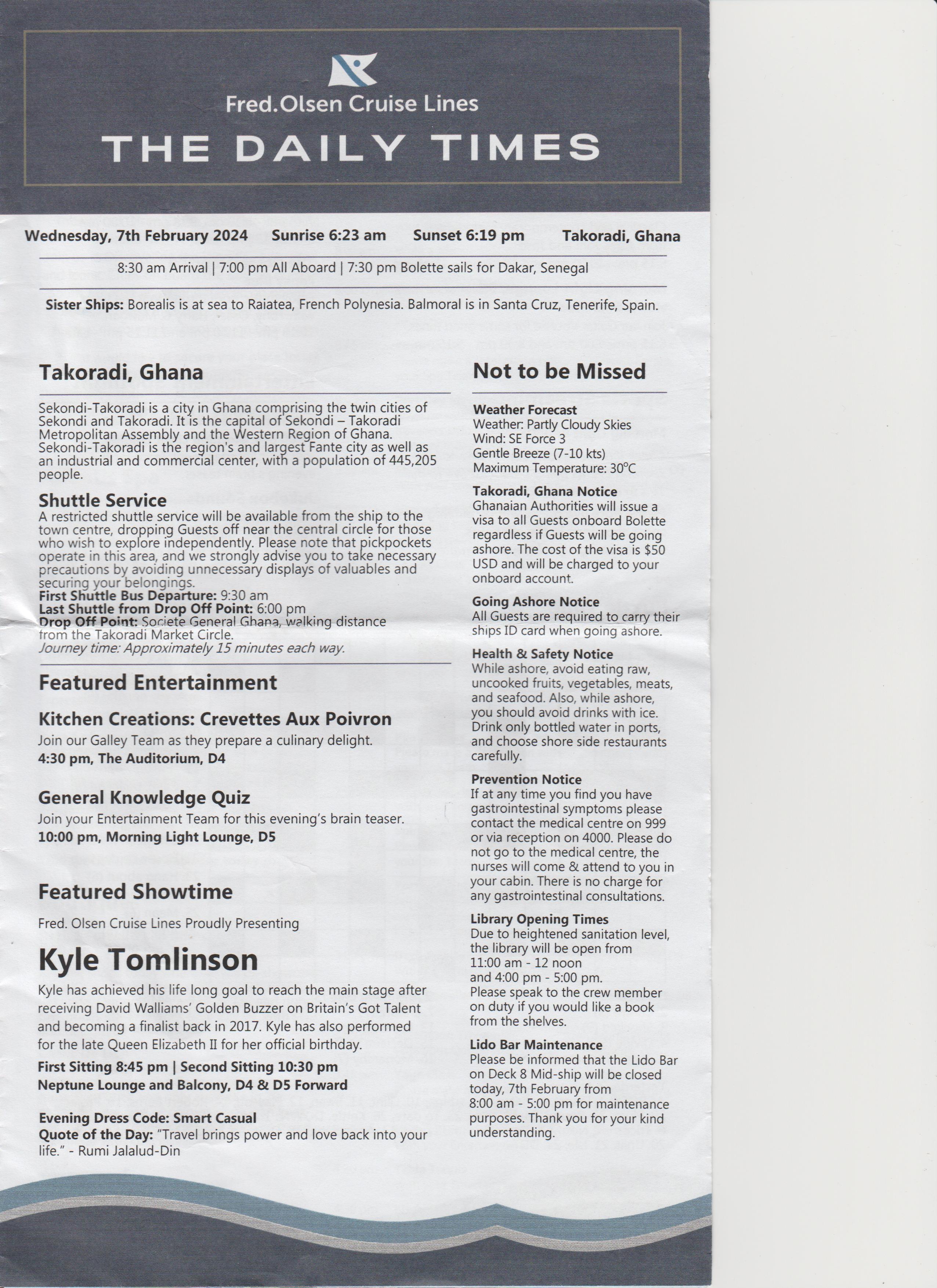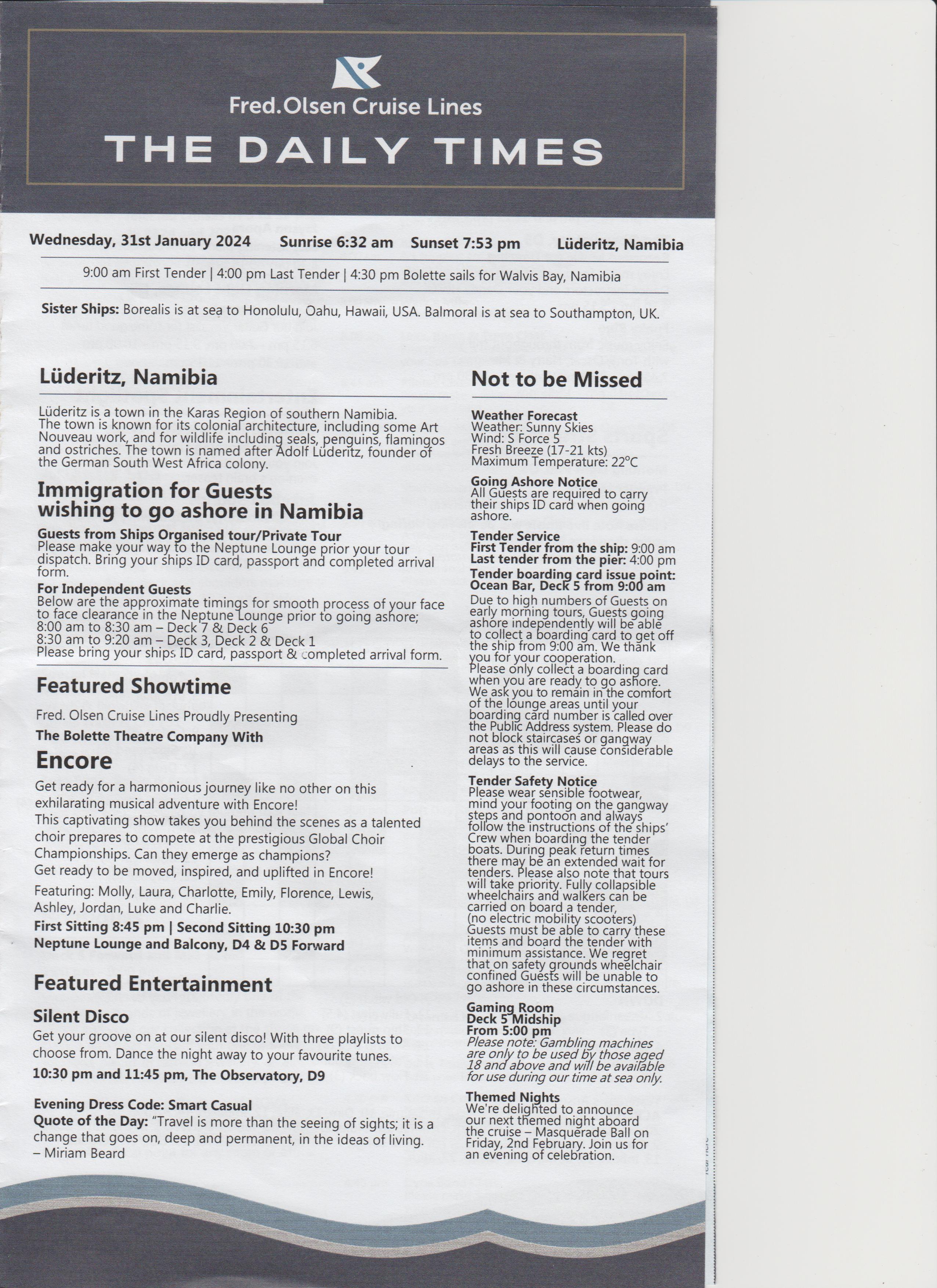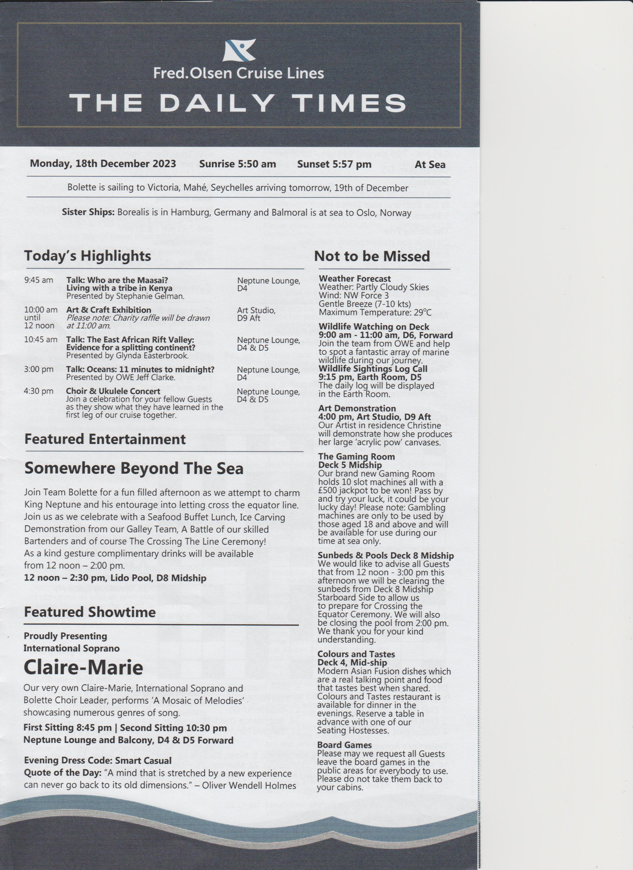 Went to the after dinner show, an introduction, a bit of everything, went back to room.
