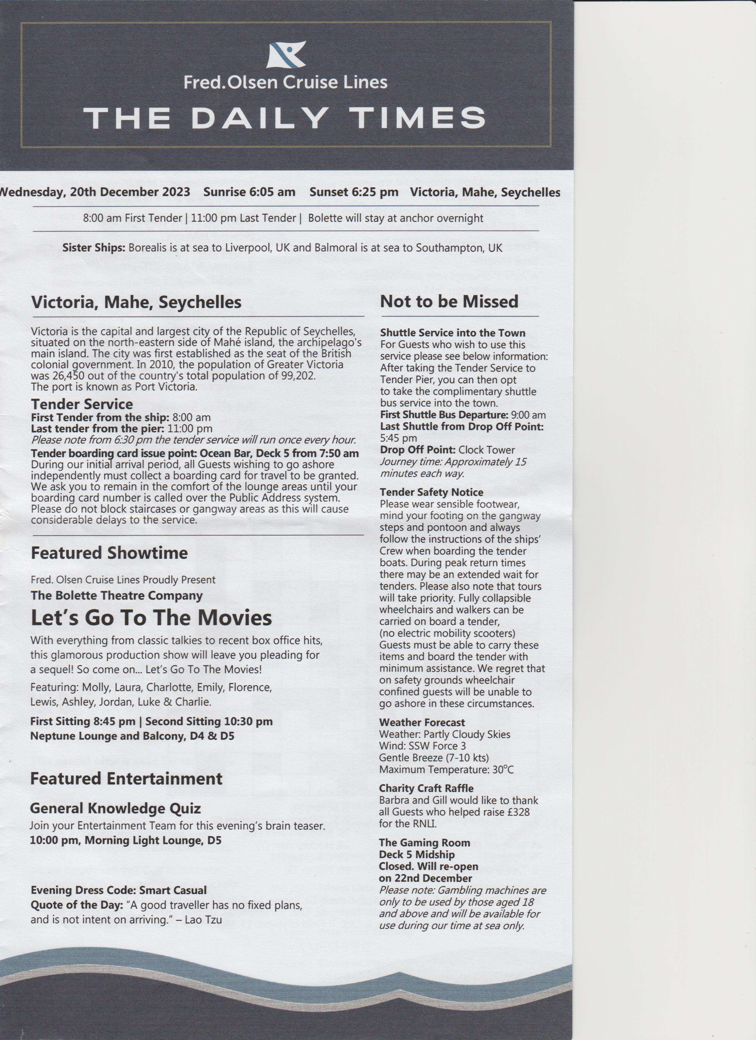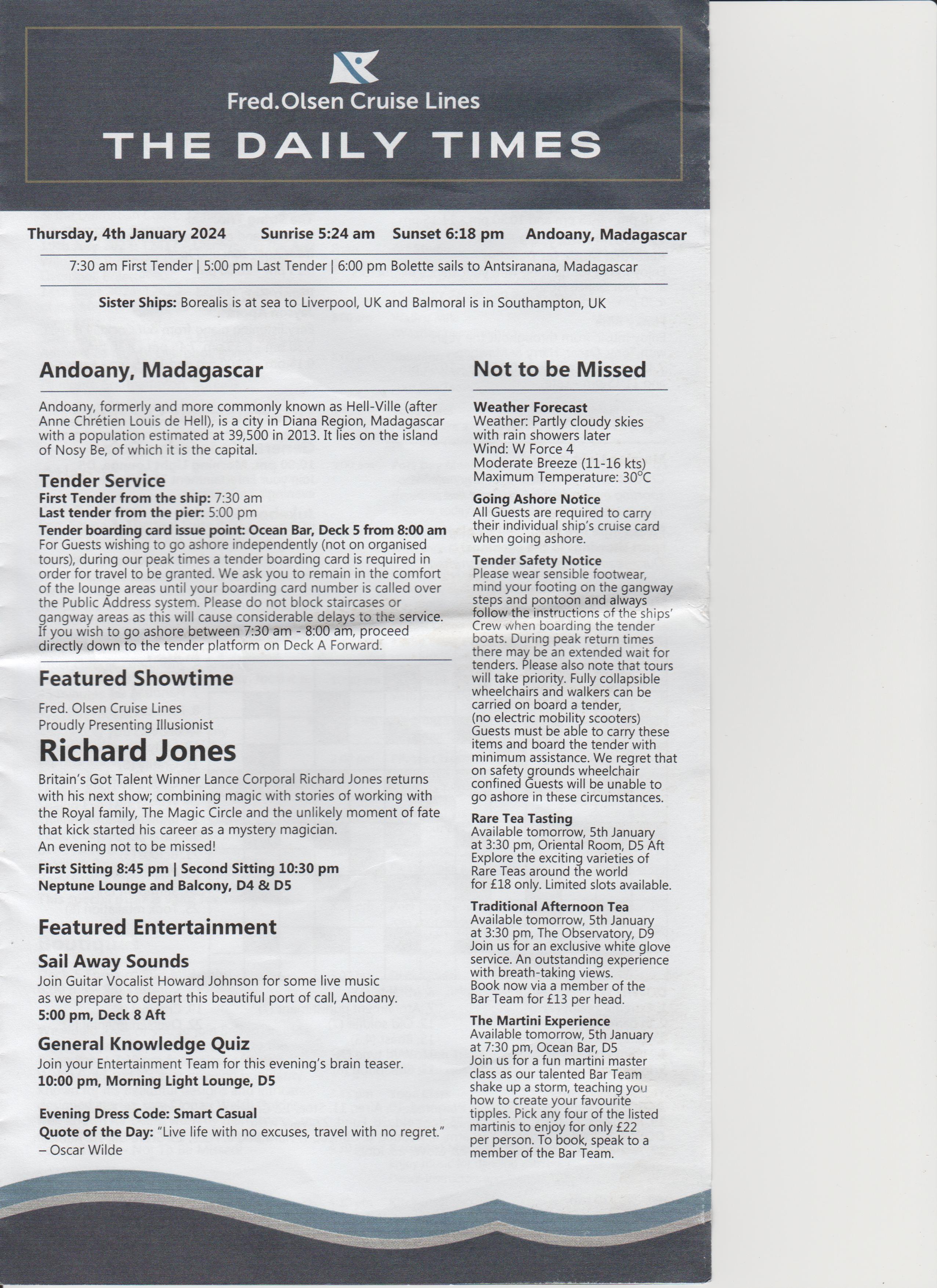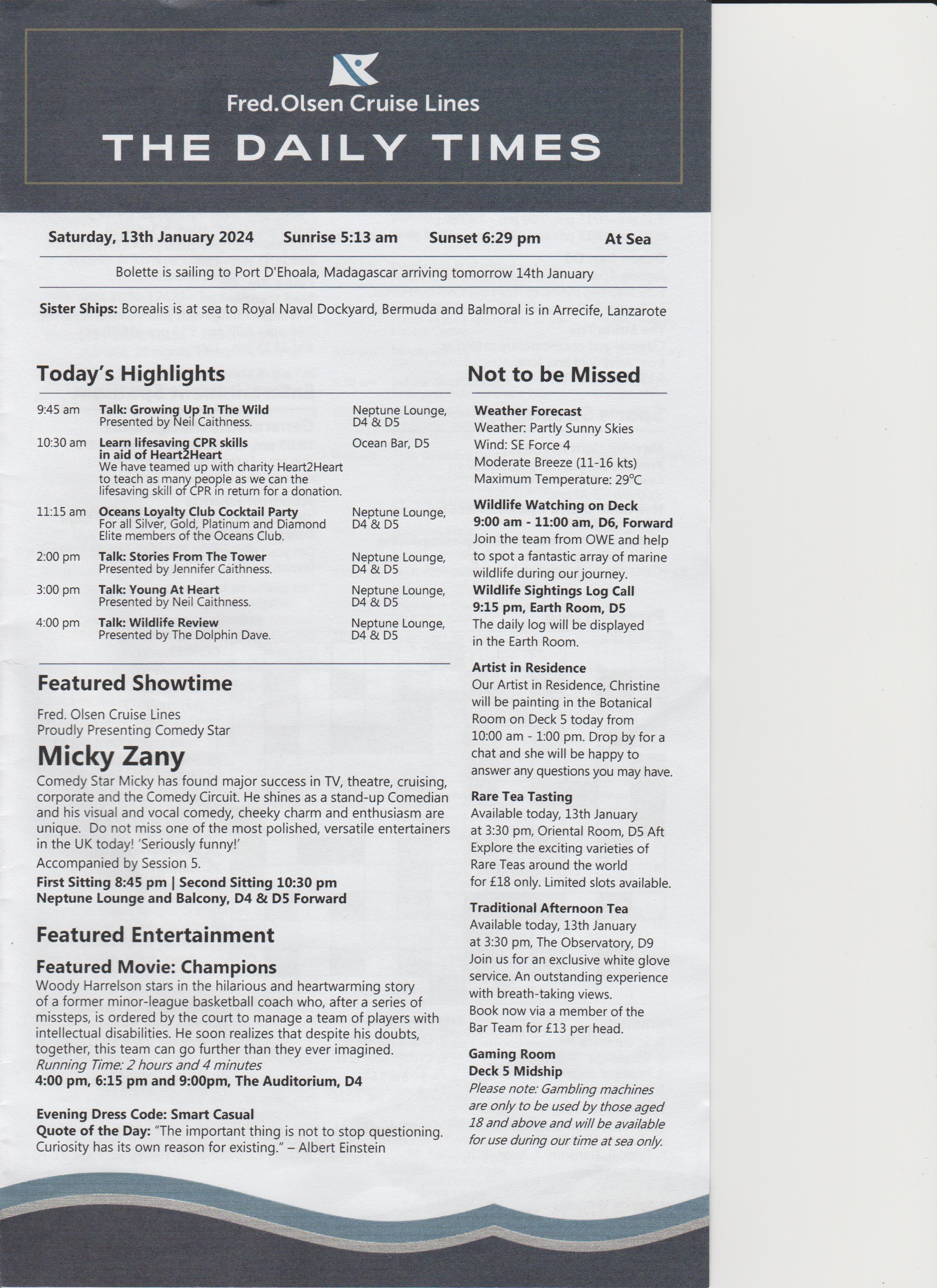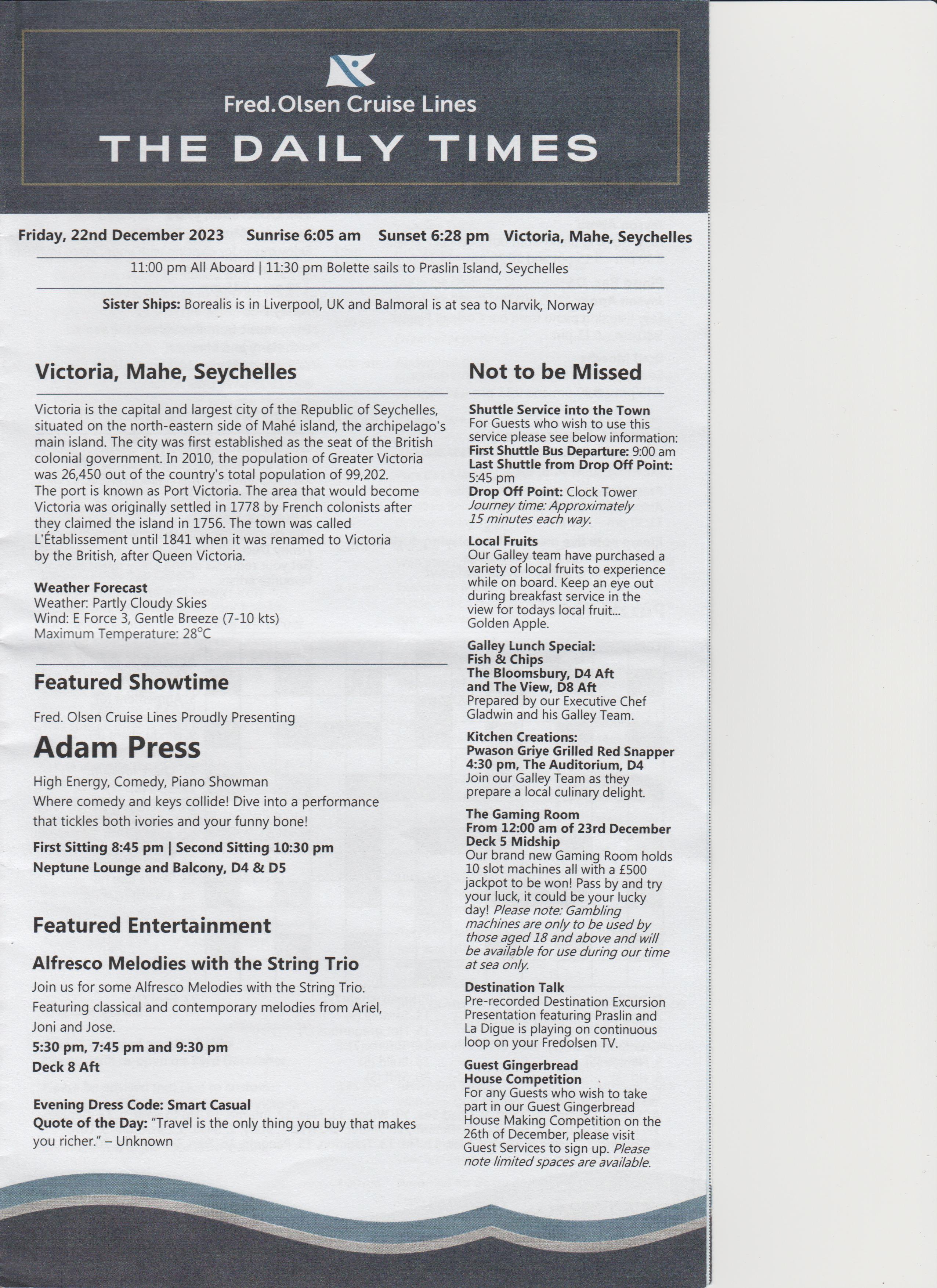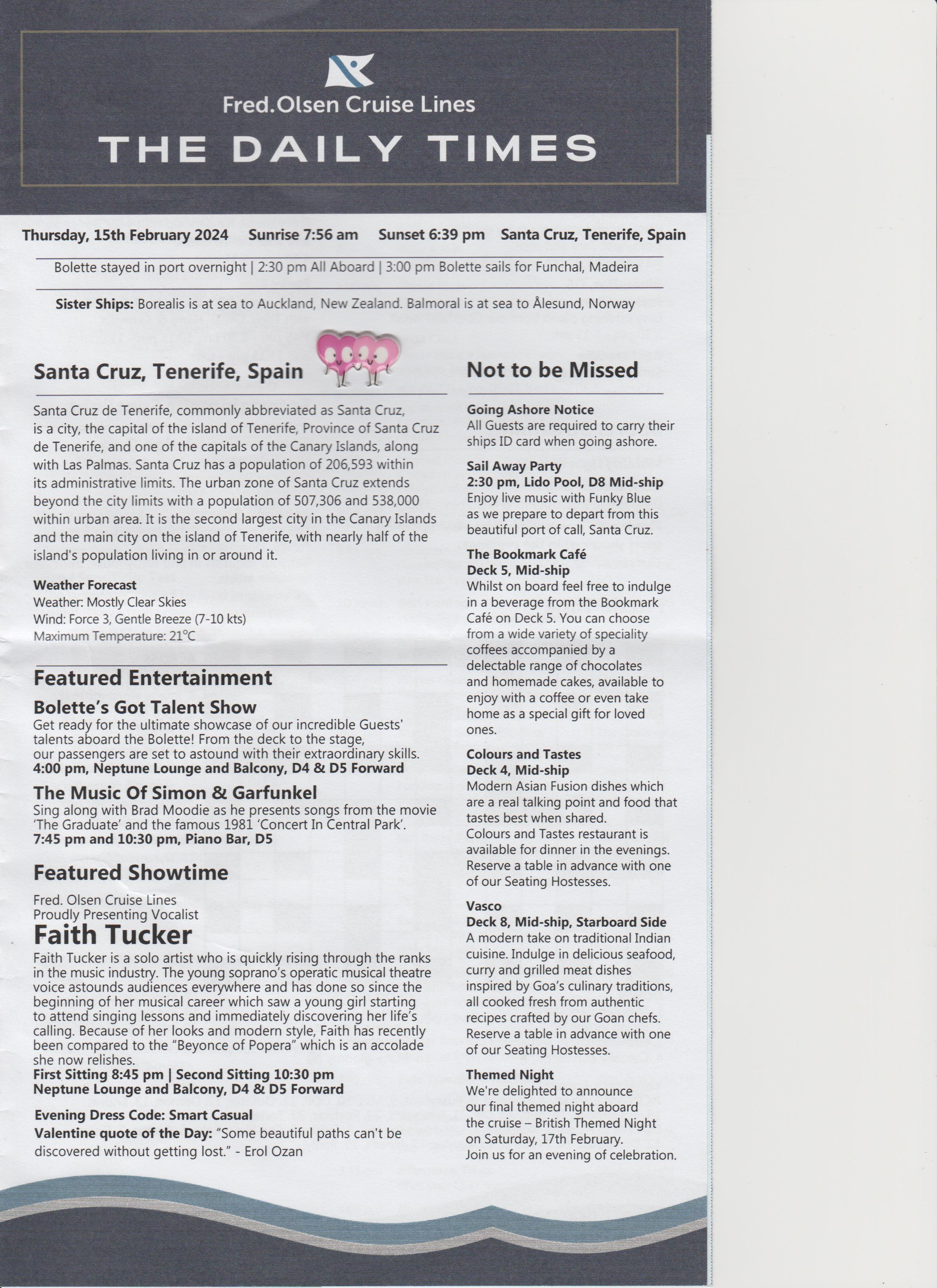 Went to the after dinner show, an introduction, a bit of everything, went back to room.