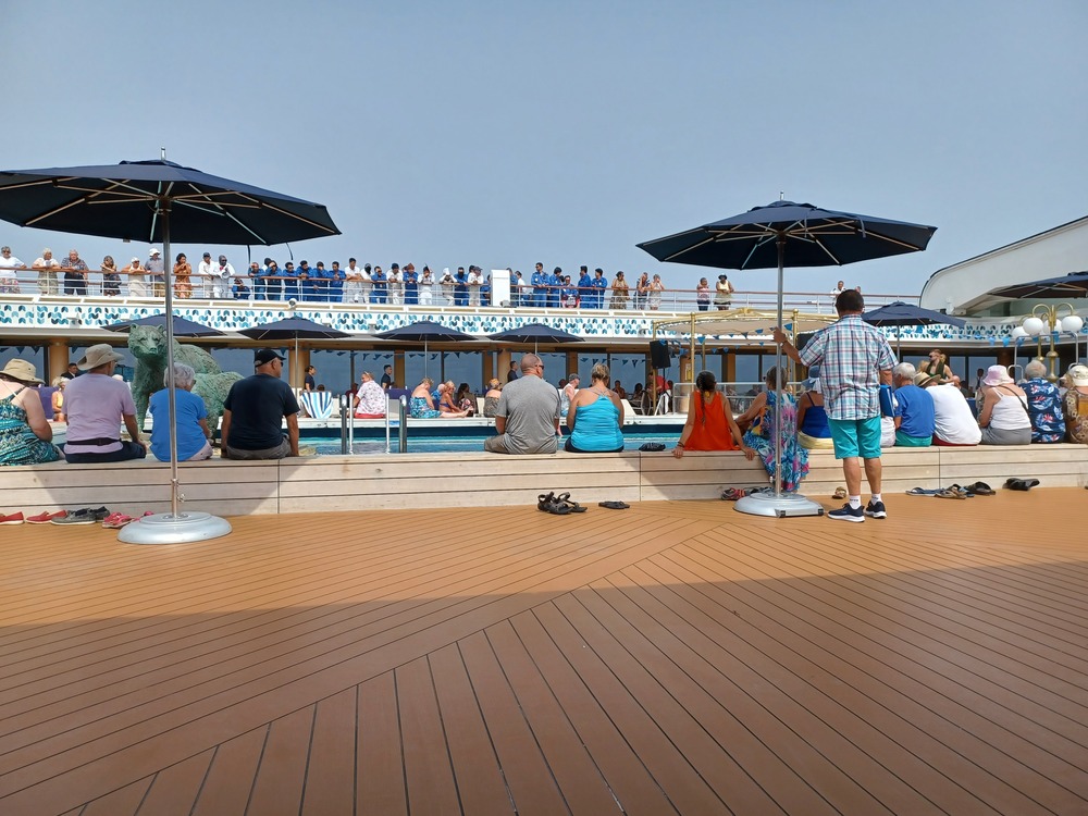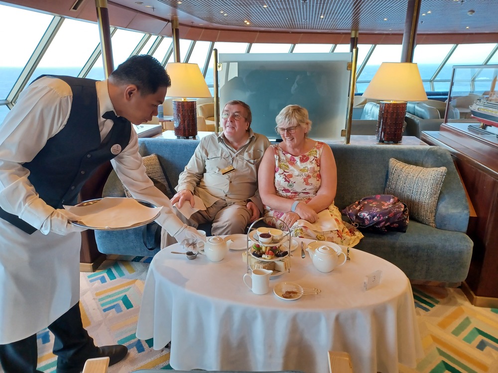 Went back to the room, some of our bags had arrived, so we unpacked those and then went to look around the ship some more. Had a cup of tea upstairs in the buffet area, Went back to the room, some more bags had arrived, unpacked those.