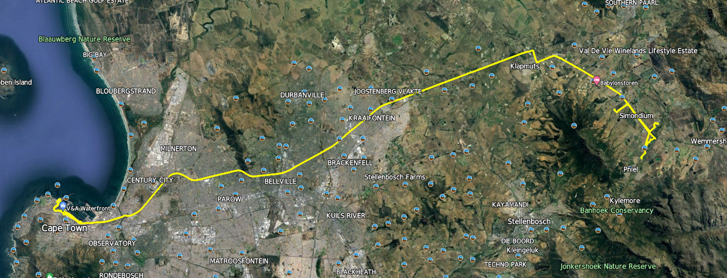 Left home at 07:30, but as we were going down the lane, the tyre pressure warning light came on, and we had to reverse up, get the compressor from the house and pump the tyre up.