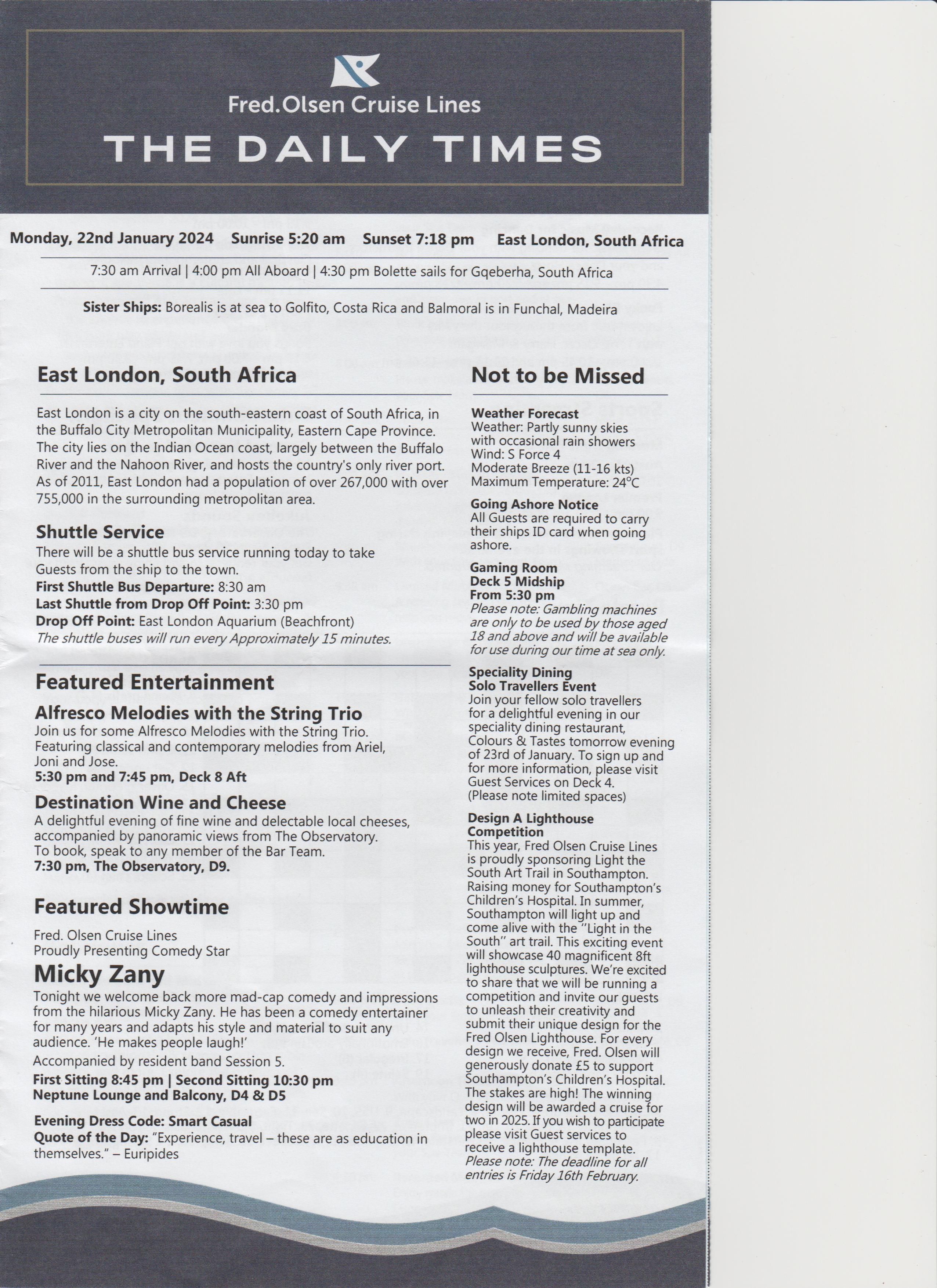 | Day1–Embarkation |